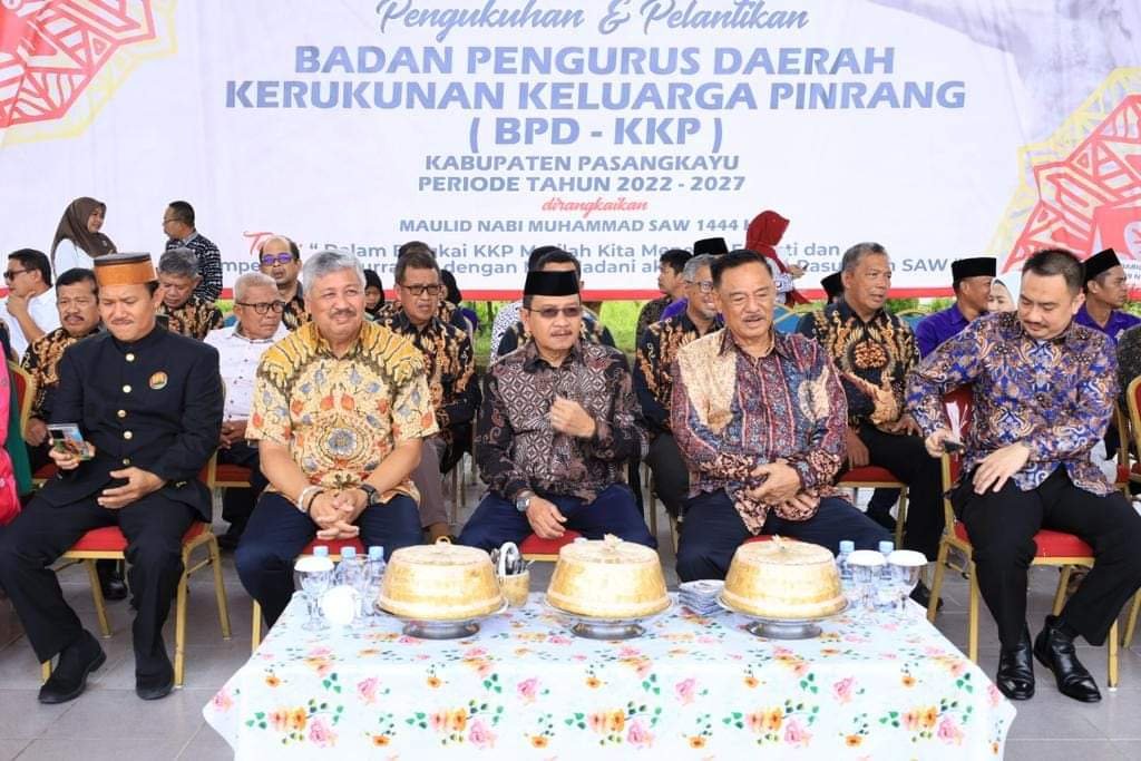 Bupati Pinrang Irwan Hamid hadir dan menyaksikan langsung pelantikan Pengurus Kerukunan Keluarga Pinrang (KKP) Kabupaten Pasangkayu, Sabtu (19/11/2022).