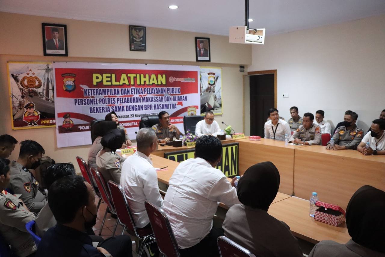 Meningkatkan keterampilan dan etika pelayanan publik bagi anggota Polres Pelabuhan Makassar dalam memberikan pelayanan kepada masyarakat, Bagian SDM menggelar Pelatihan Etika Pelayanan Publik, Rabu (23/11/2022).