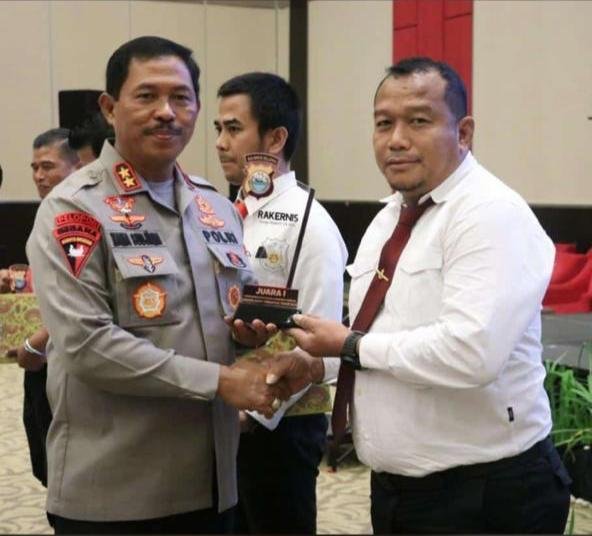 SOROTMAKASSAR - MAKASSAR - Kapolda Sulsel Irjen Pol Nana Sudjana menyerahkan secara langsung penghargaan kepada Kasat Resnarkoba Polres Pelabuhan Makassar AKP Harianto Rahman atas kinerjanya dalam memberantas narkotika di wilayah hukumnya, Kamis (24/11/2022).