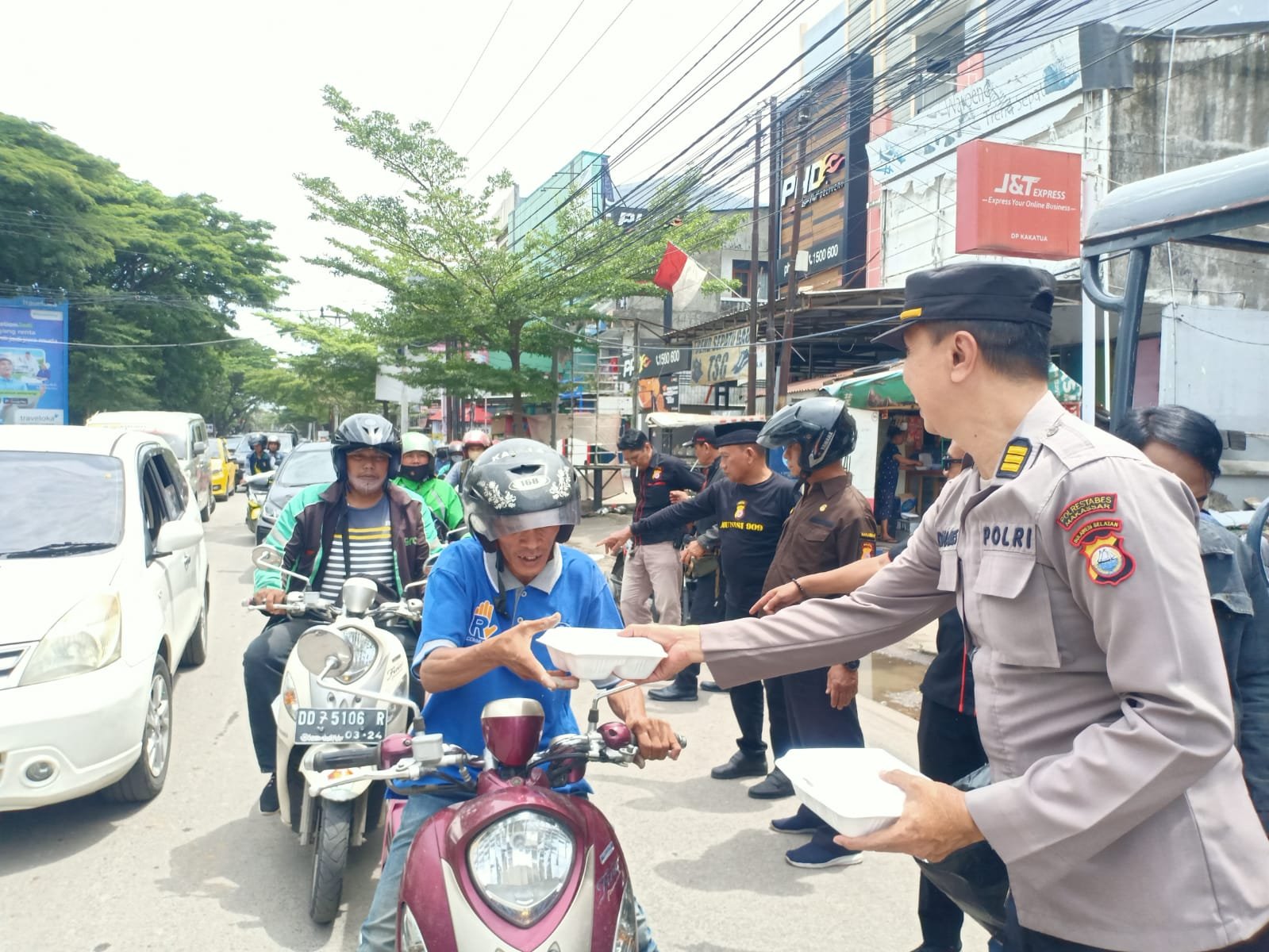 "Jumat berbagi berkah yang dilaksanakan bersama FKPM saat ini merupakan bentuk kepedulian Polri dalam hal ini Polsek Mamajang terhadap sesama, kegiatan ini merupakan rutinitas Polsek Mamajang dalam berbagi kepada masyarakat pengguna jalan khususnya kepada para ojek online (ojol), tukang bentor, sopir angkot dan sopir mobil kampas yang tengah melintas," ucap Wakapolsek Mamajang AKP Danang Sulistyono.