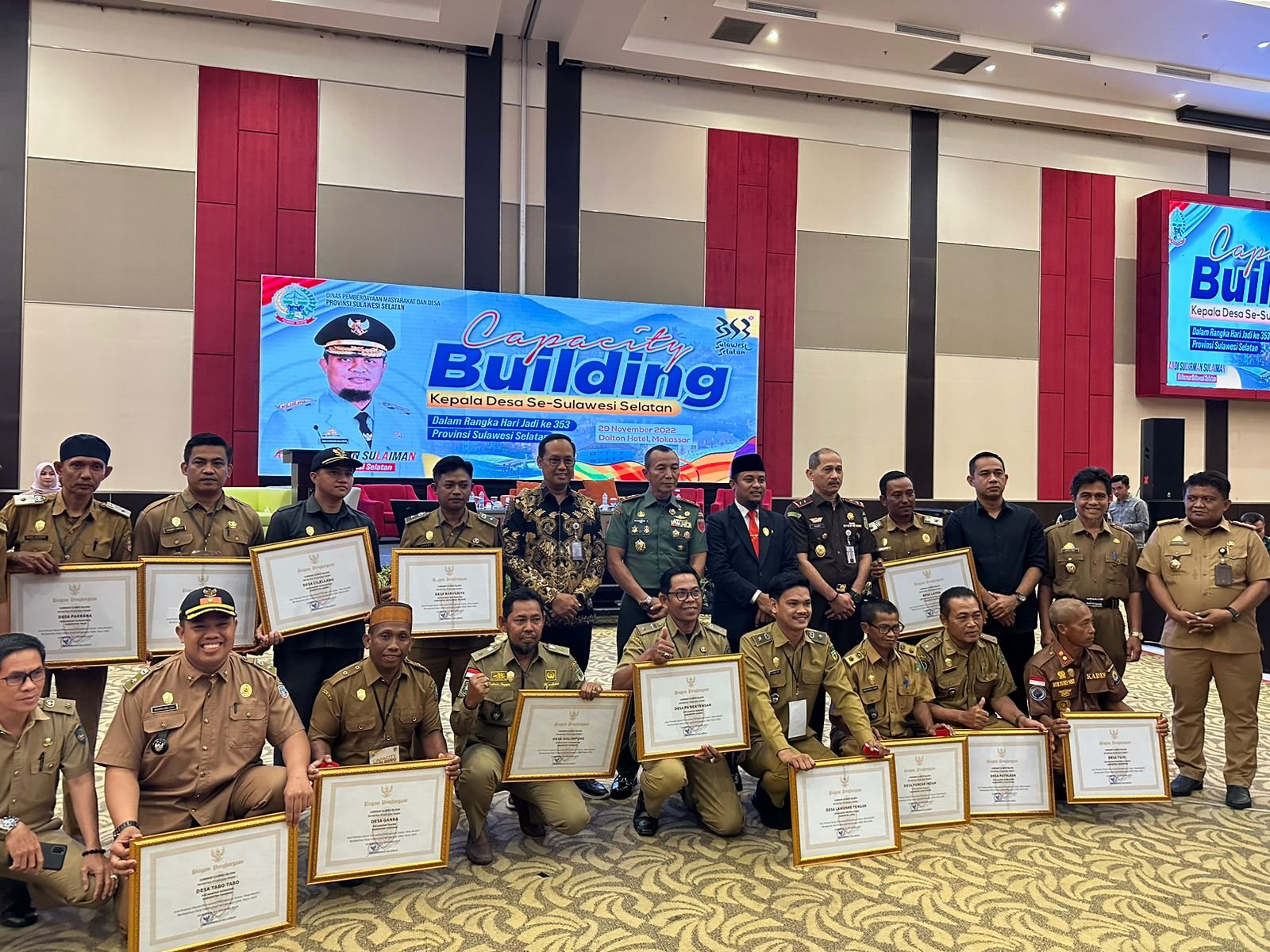 Betapa tidak, sertifikat penghargaan tersebut, diserahkan di hadapan anggota Forkopimda Sulsel dan Wakil Ketua DPRD Provinsi, disaksikan sekitar 1.600 kades dari 21 Kabupaten se-Sulawesi Selatan yang mengikuti "Capasity Building" yang memenuhi Gedung Pertemuan Hotel Dalton, Makassar.