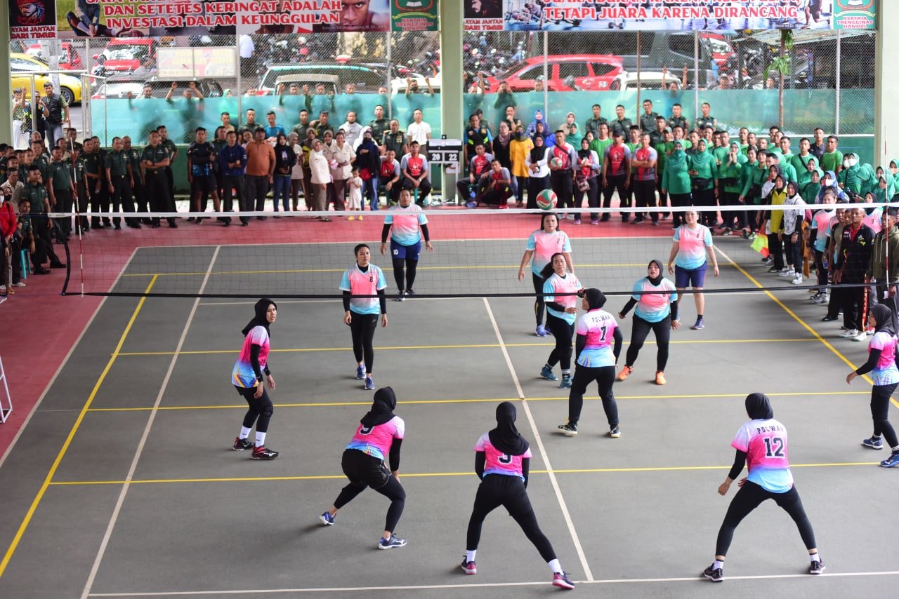 Ketua Persit Kartika Chandra Kirana Daerah XIV Hasanuddin selaku Ibu Raksakarini Sri Sena Kodam XIV Hasanuddin Ny. Desi Totok Imam membuka secara resmi pertandingan bola volly dalam rangka memperingati HUT ke-61 Korps Wanita Angkatan Darat (Kowad), bertempat di Lapangan Volly Hasanuddin, Kota Makassar, Rabu (30/11/2022).
