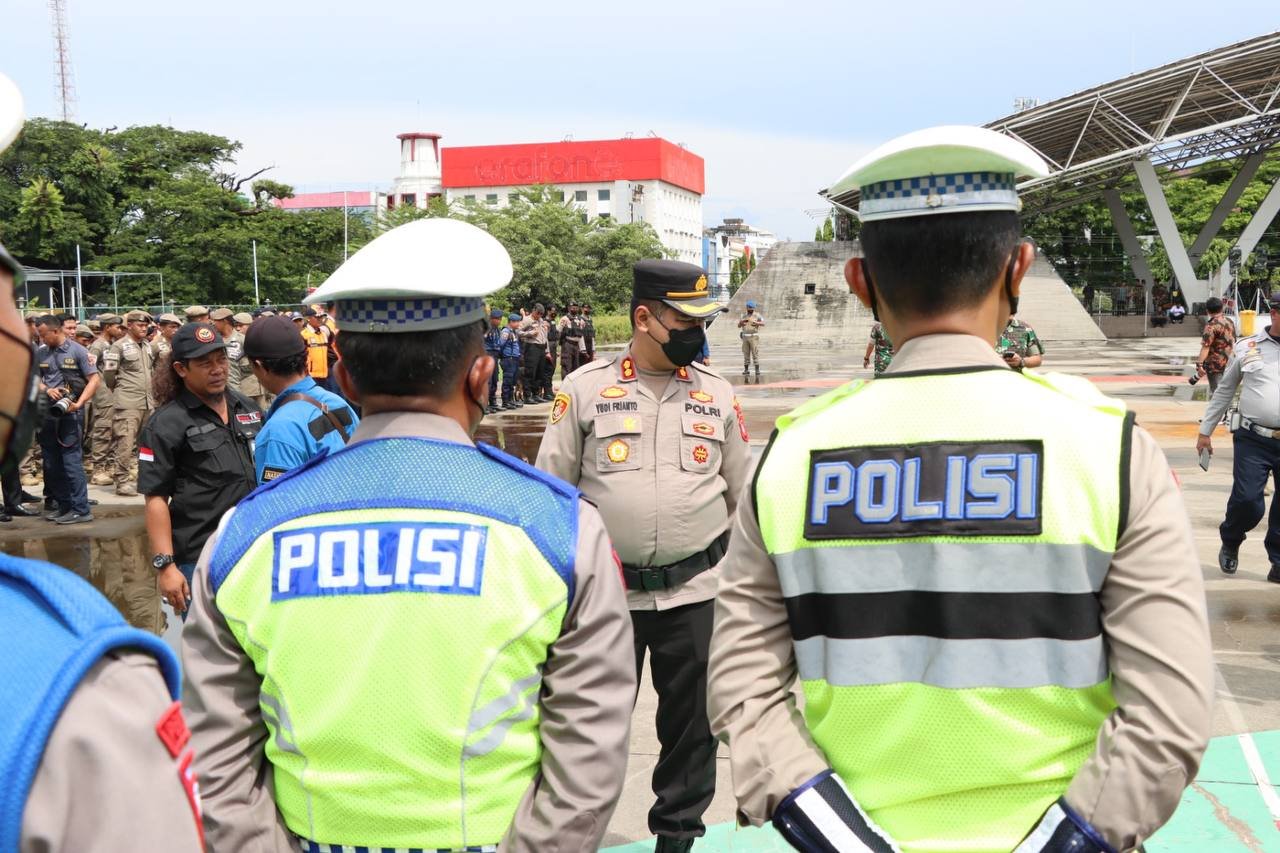 Kapolres Pelabuhan Makassar AKBP Yudi Frianto, SIK, MH mengikuti apel gelar pasukan dalam rangka pengamanan VVIP Kunjungan Kerja Wakil Presiden Republik Indonesia bapak Prof Dr. (H.C) K.H Ma’ruf Amin di Sulawesi Selatan, Kamis (01/12/2022).