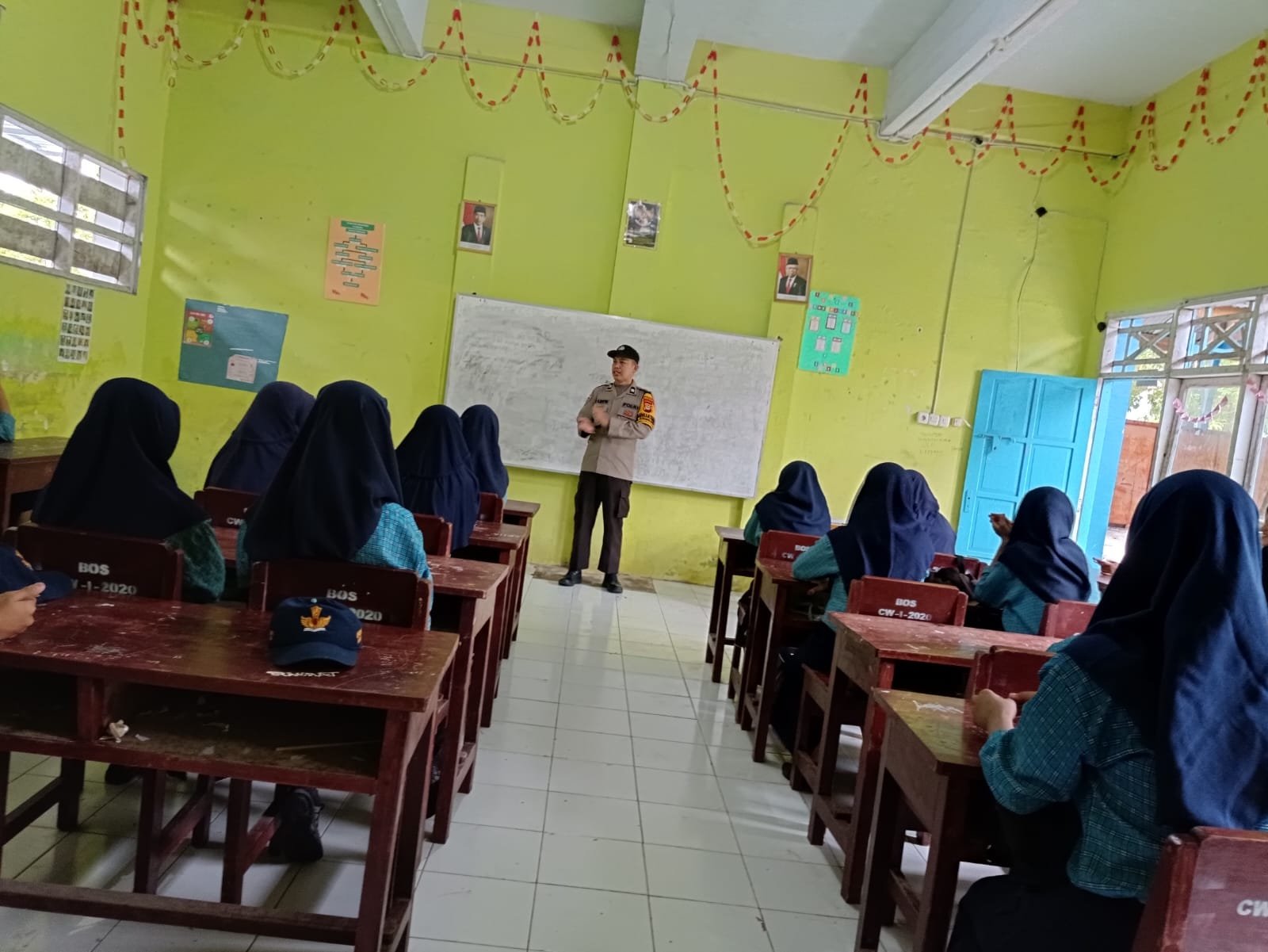 Guna mencegah kenakalan remaja, Bhabinkamtibmas Pulau Kodingareng Aiptu H Abdul Hafid memberikan penyuluhan kepada siswa–siswi SMPN 38 Pulau Kodingareng, Kecamatan Kepulauan Sangkarrang, Makassar, Kamis (01/12/2022).