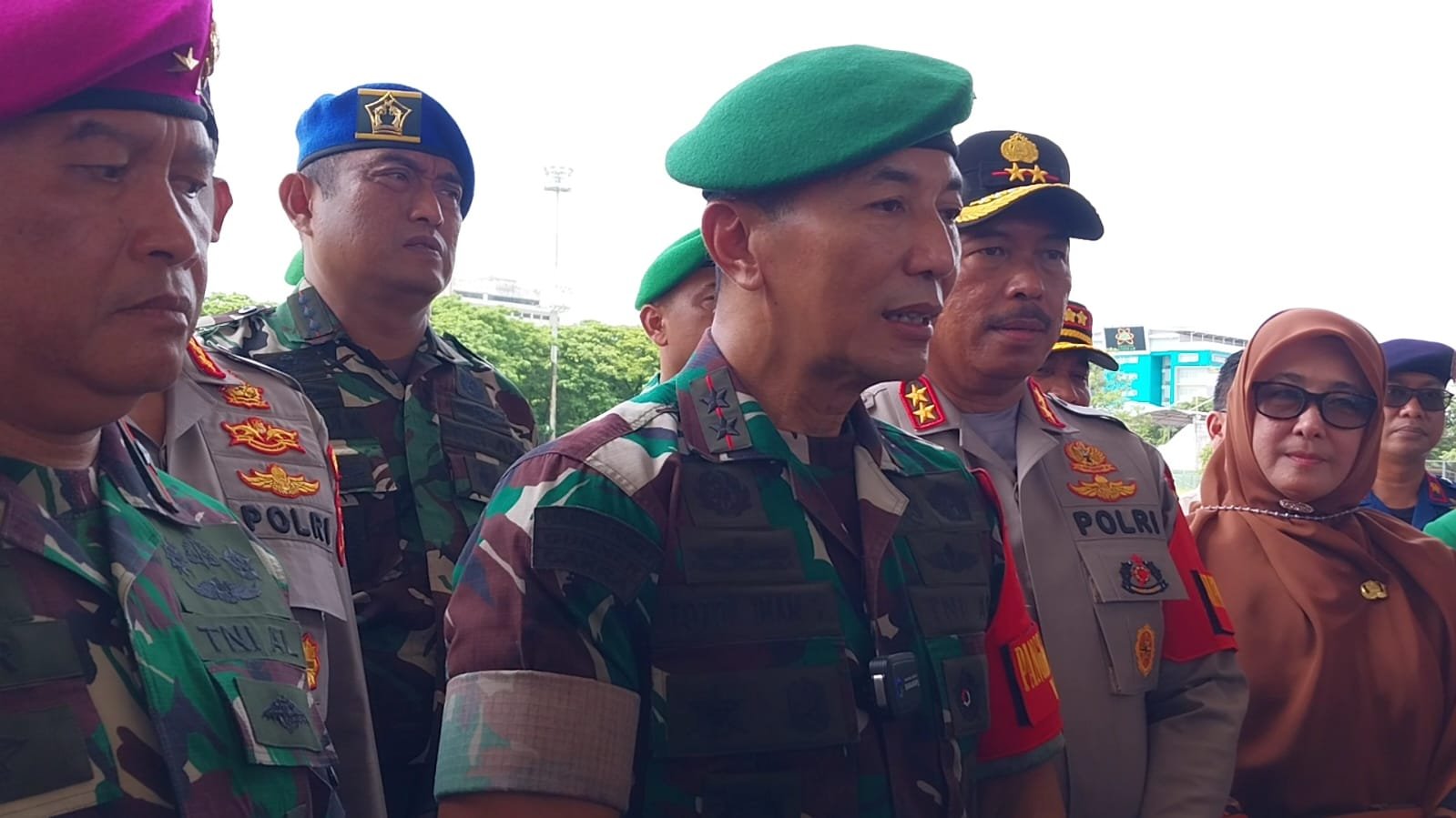 "Hari ini kita menggelar pengamanan terpadu gabungan personel TNI-Polri, dan Pemerintah daerah, semua gabung jadi satu sama-sama untuk mengamankan kedatangan RI 2 ke wilayah Kota Makassar dan Kabupaten Wajo," ujar Pangdam, Mayjen TNI Totok Imam Santoso.