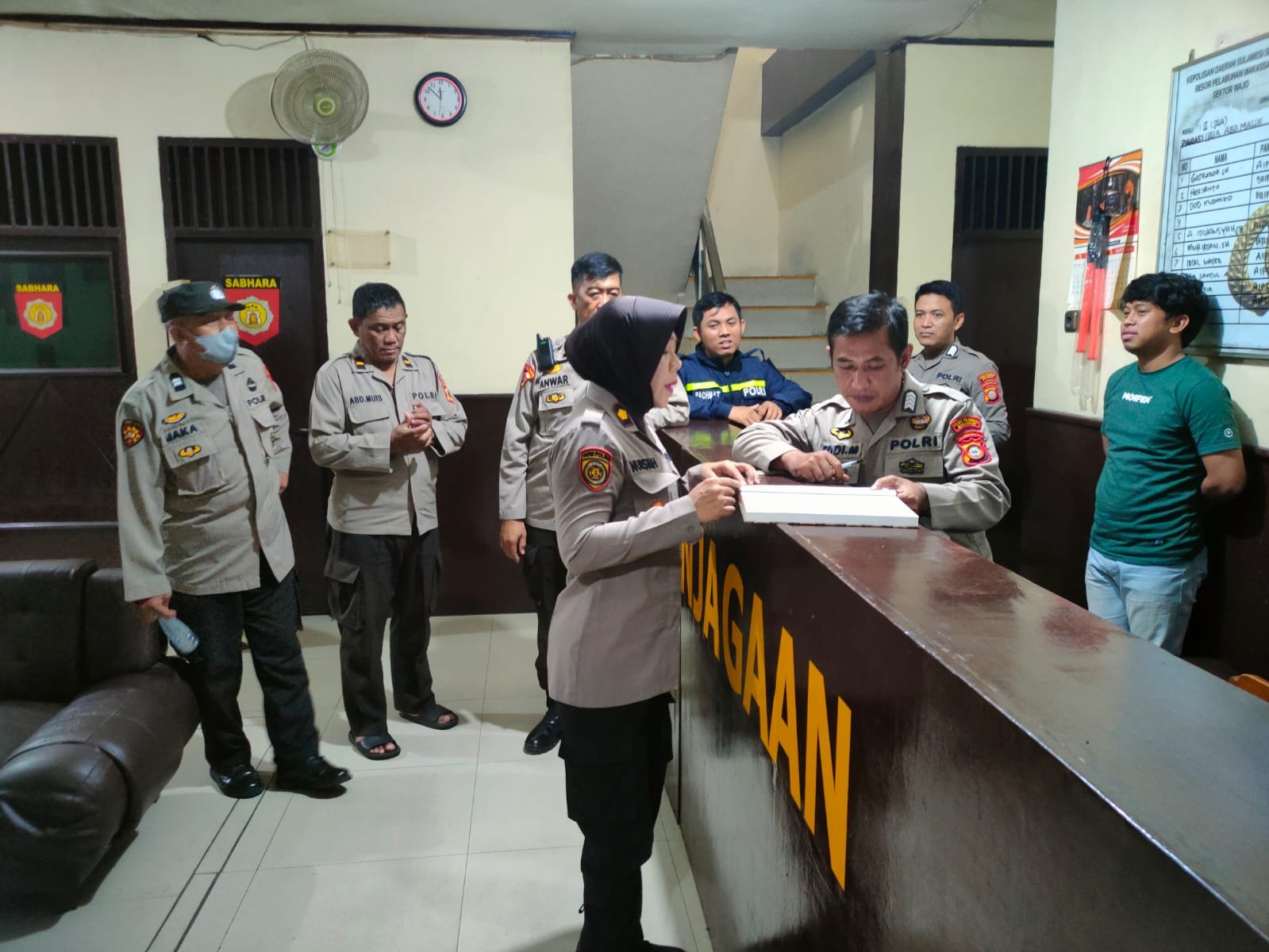 Mengantisipasi gangguan Kamtibmas di wilayah Polres Pelabuhan Makassar, Pamenwas Tim On Call regu II, Kabag SDM Kompol Nursiah Abdullah melaksanakan patroli dan kontrol Polsek jajaran serta ruangan tahanan.