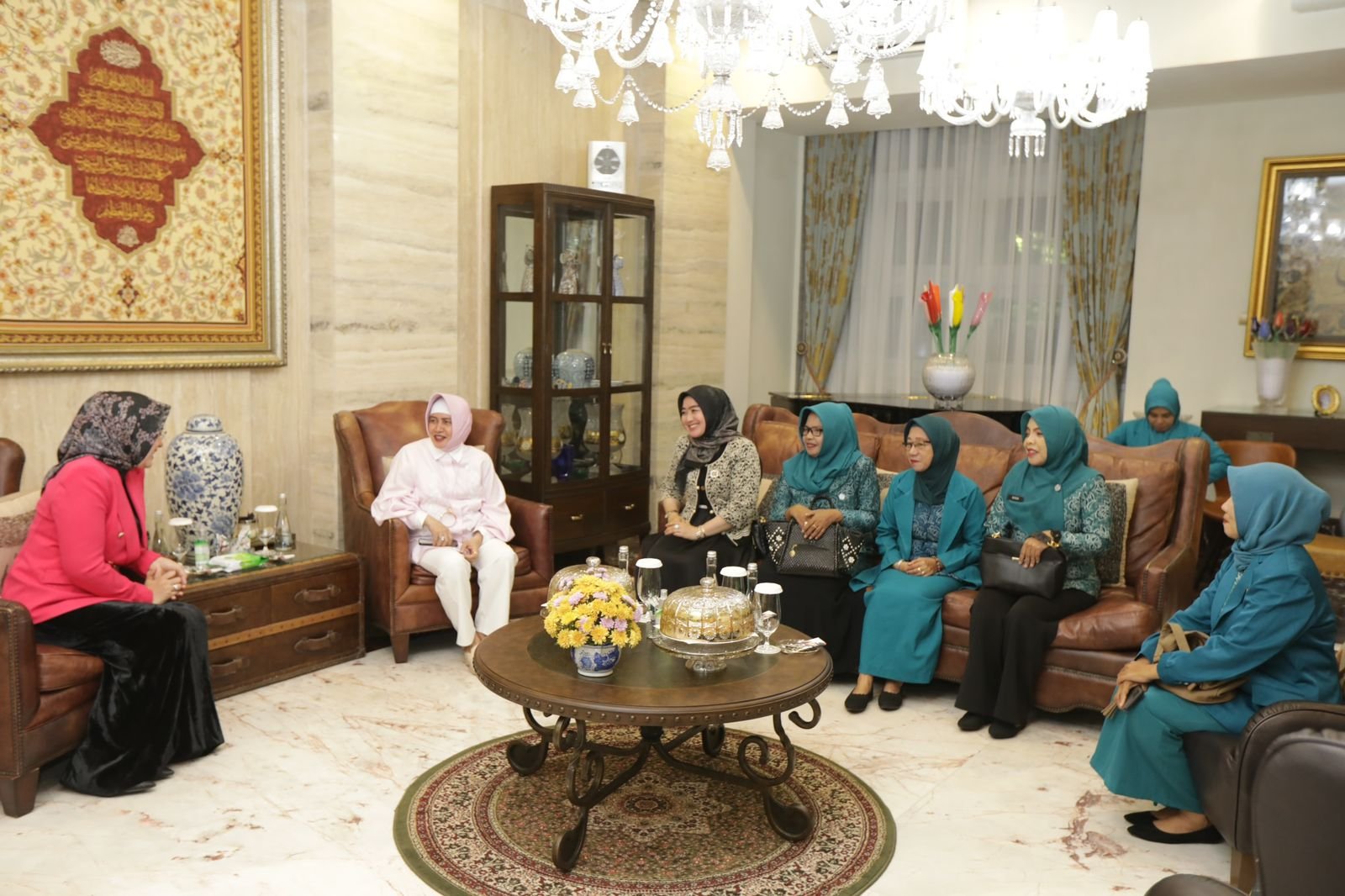 Ketua TP PKK Kota Makassar, Indira Yusuf Ismail menerima kunjungan TP PKK Kota Palu. Indira menyambut kehadiran Ketua TP PKK Kota Palu, Diah Puspita beserta rombongan di kediaman pribadinya, Jalan Amirullah, Minggu (18/12/2022).