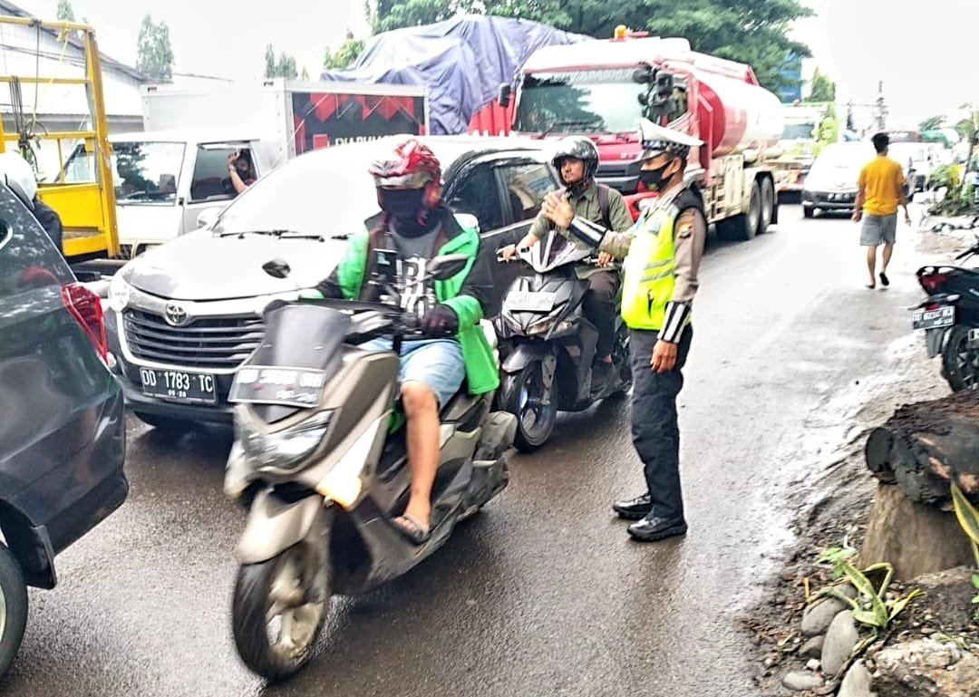 Antisipasi kepadatan lalulintas, Unit Lantas Polsek Ujung Tanah Polres Pelabuhan Makassar mengurai kemacetan dengan rutin melakukan pengaturan lalulintas.