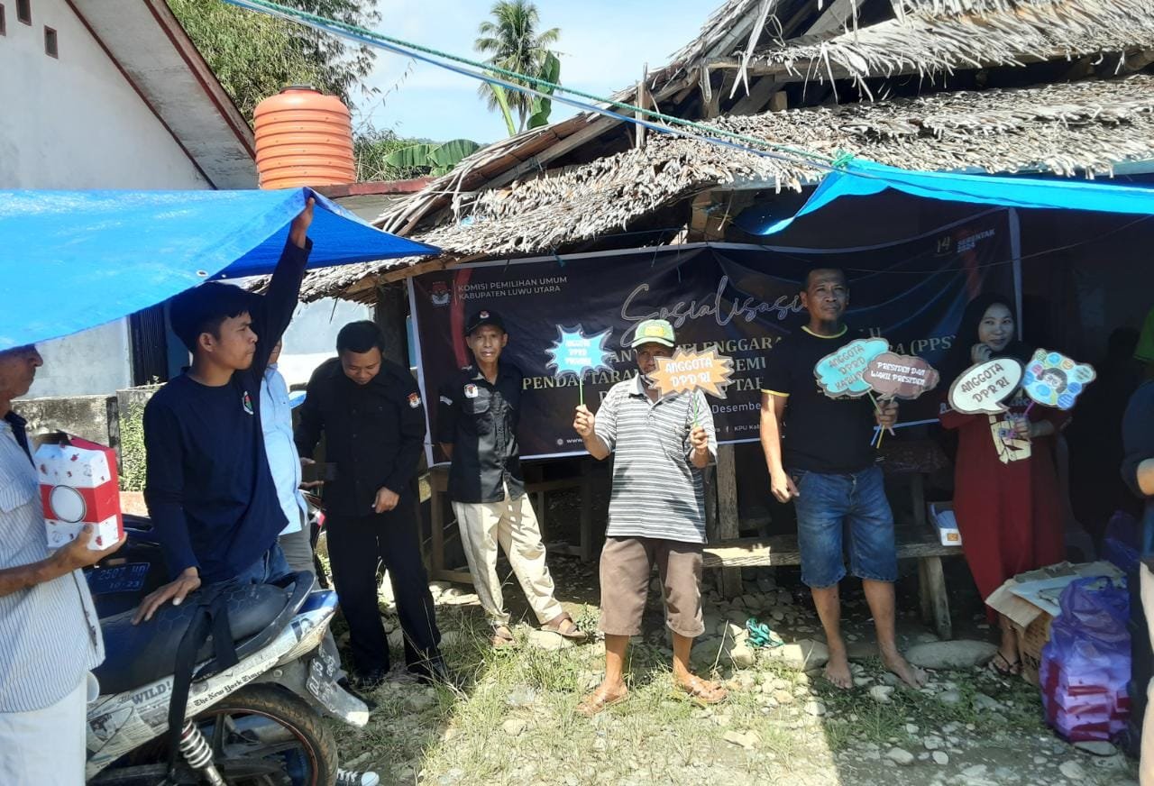 Komisi Pemilihan Umum (KPU) Kabupaten Luwu Utara blusukan ke Pasar Rakyat Tarue Kecamatan Sabbang Selatan, Rabu (21/12/2022).
