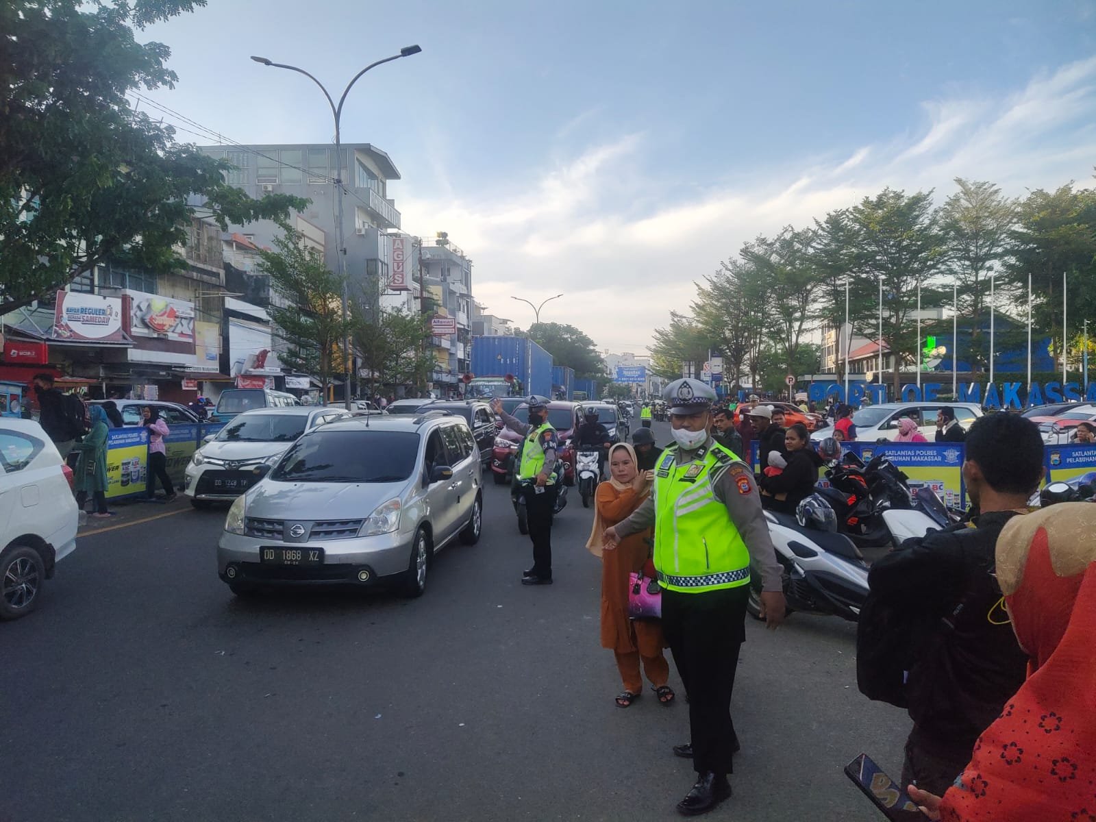 "Tujuan dari pengaturan ini untuk memperlancar arus lalu lintas, mengingat banyak masyarakat beraktifitas pada saat ada kapal sandar di dermaga Pelabuhan Soekarno Hatta Makassar," terang Kasubsipenmas Sihumas Aipda Adil.