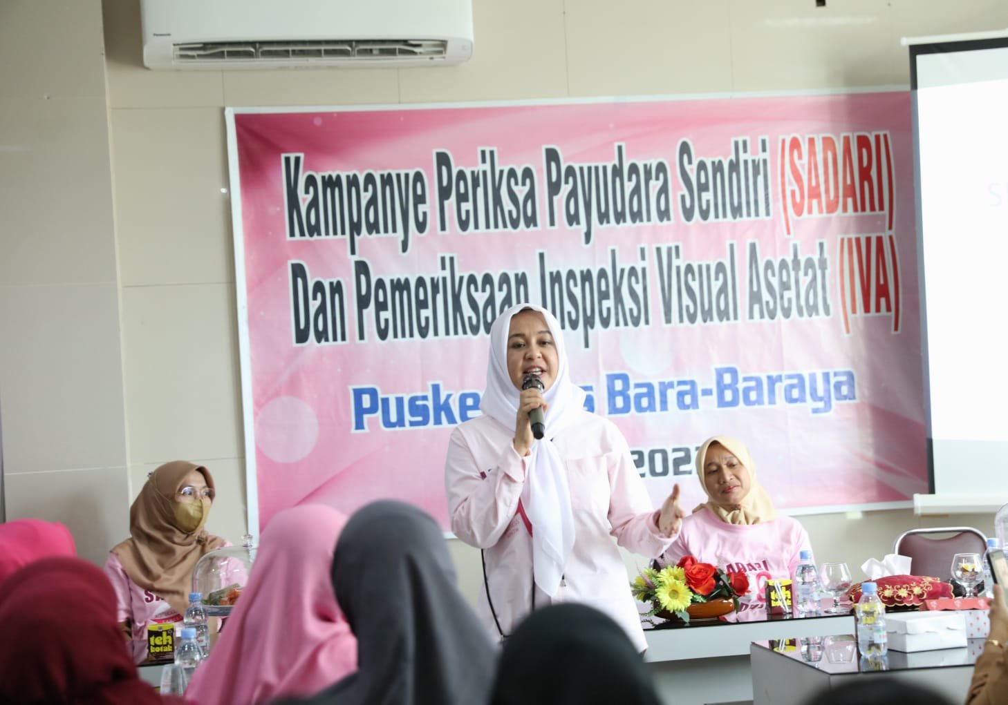 Ketua TP PKK Kota Makassar, Indira Yusuf Ismail bersama Wakil Wali Kota Makassar, Fatmawati Rusdi menggaungkan kampanye SADARI atau Periksa Payudara Sendiri dan pemeriksaan inspeksi visual asetat atau IVA.