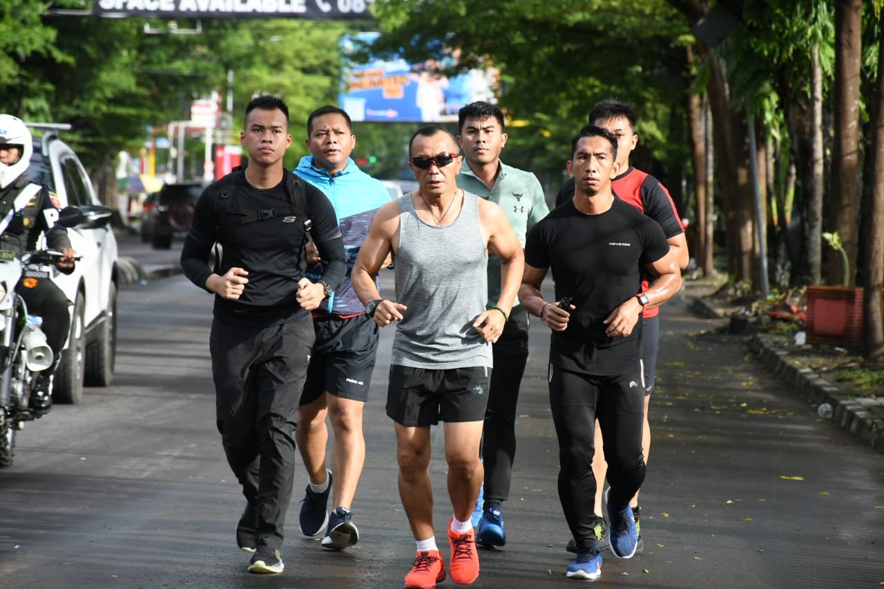 Pangdam XIV/Hasanuddin Mayjen TNI Dr. Totok Imam Santoso, SIP, S.Sos, M.Tr(Han) didampingi beberapa anggota, kembali mengawali tugasnya dengan lari pagi atau jogging menuju kantor yang berada di Jl. Urip Sumoharjo Kota Makassar, Senin (26/12/2022).