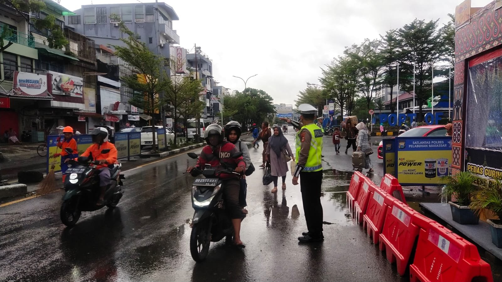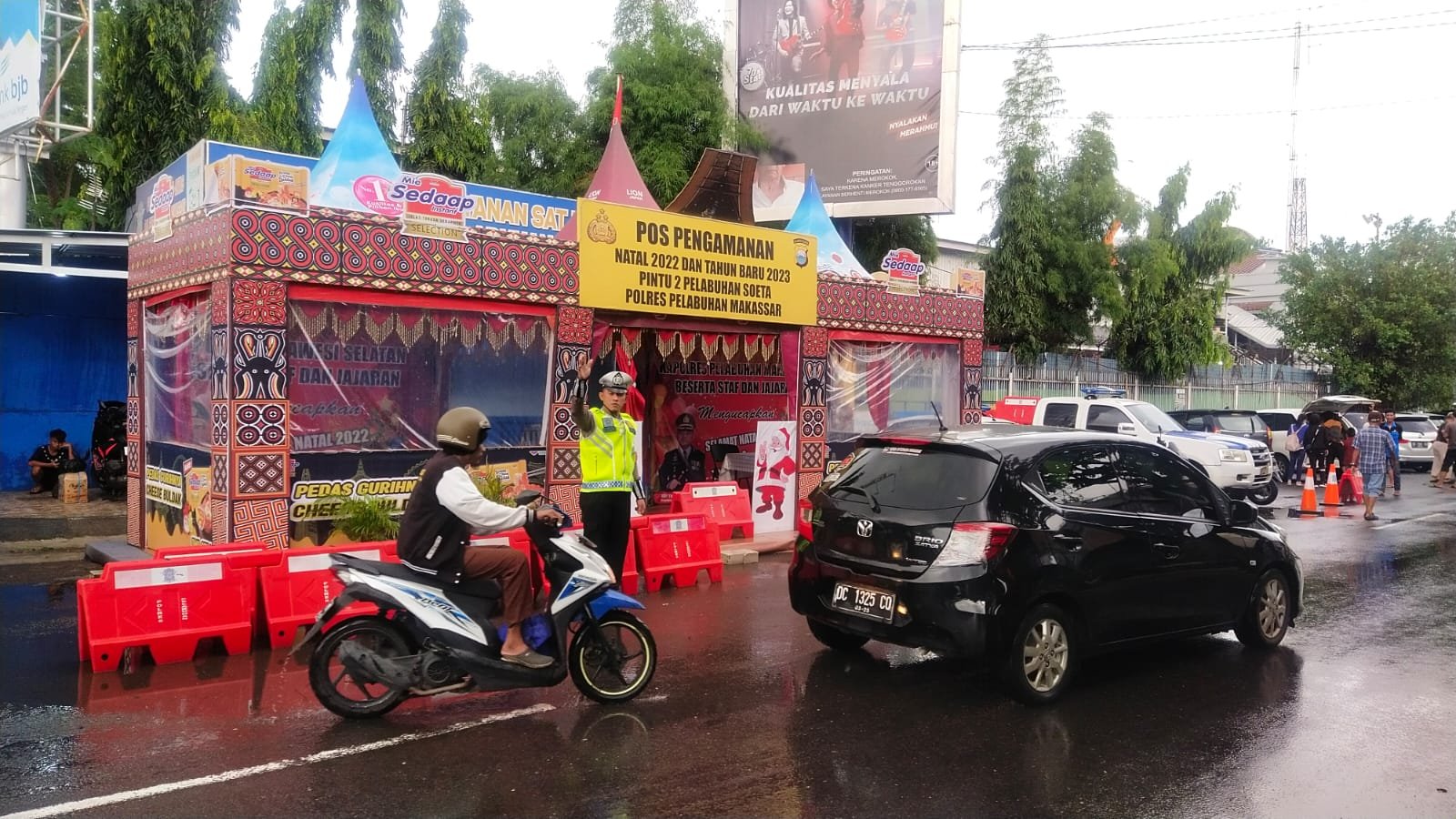 "Seperti yang dilakukan personel Pos Pengamanan Operasi Lilin 2022 melaksanakan pengaturan lalu lintas di depan pintu II Pelabuhan Makassar," ucap Kasubsipenmas Sihumas Aipda Adil, Kamis (29/12/2022).