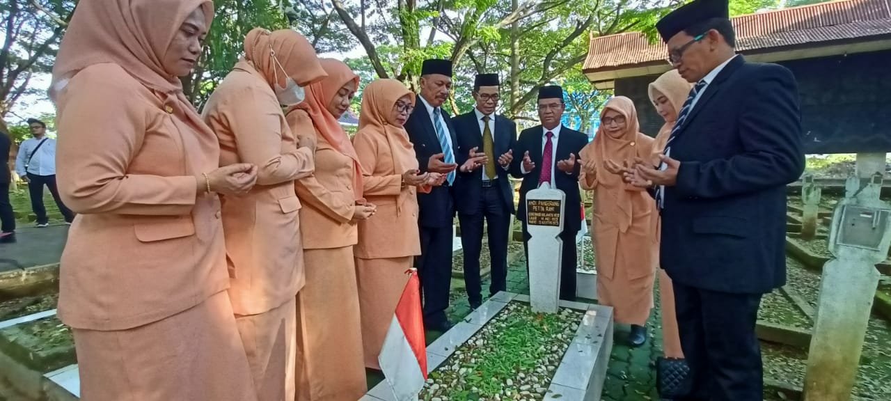 Sebagai bentuk penghormatan terhadap jasa para kusuma bangsa, jajaran pegawai Kantor Wilayah Kementerian Agama (Kemenag) Provinsi Sulawesi Selatan melaksakan upacara tabur bunga di Taman Makam Pahlawan (TMP) Panaikang Makassar, Senin 2 Januari 2023.