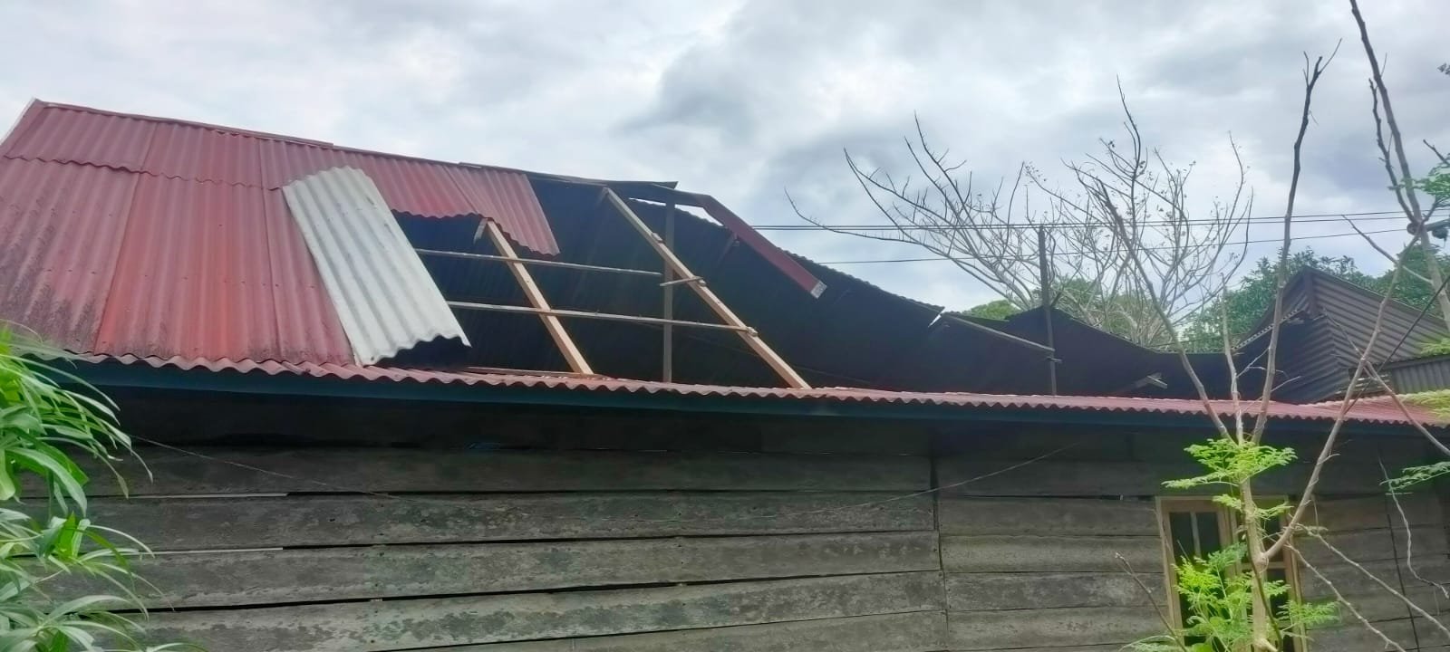 Akibatnya puluhan rumah rusak pada bagian atap setelah diterjang angin kencang.