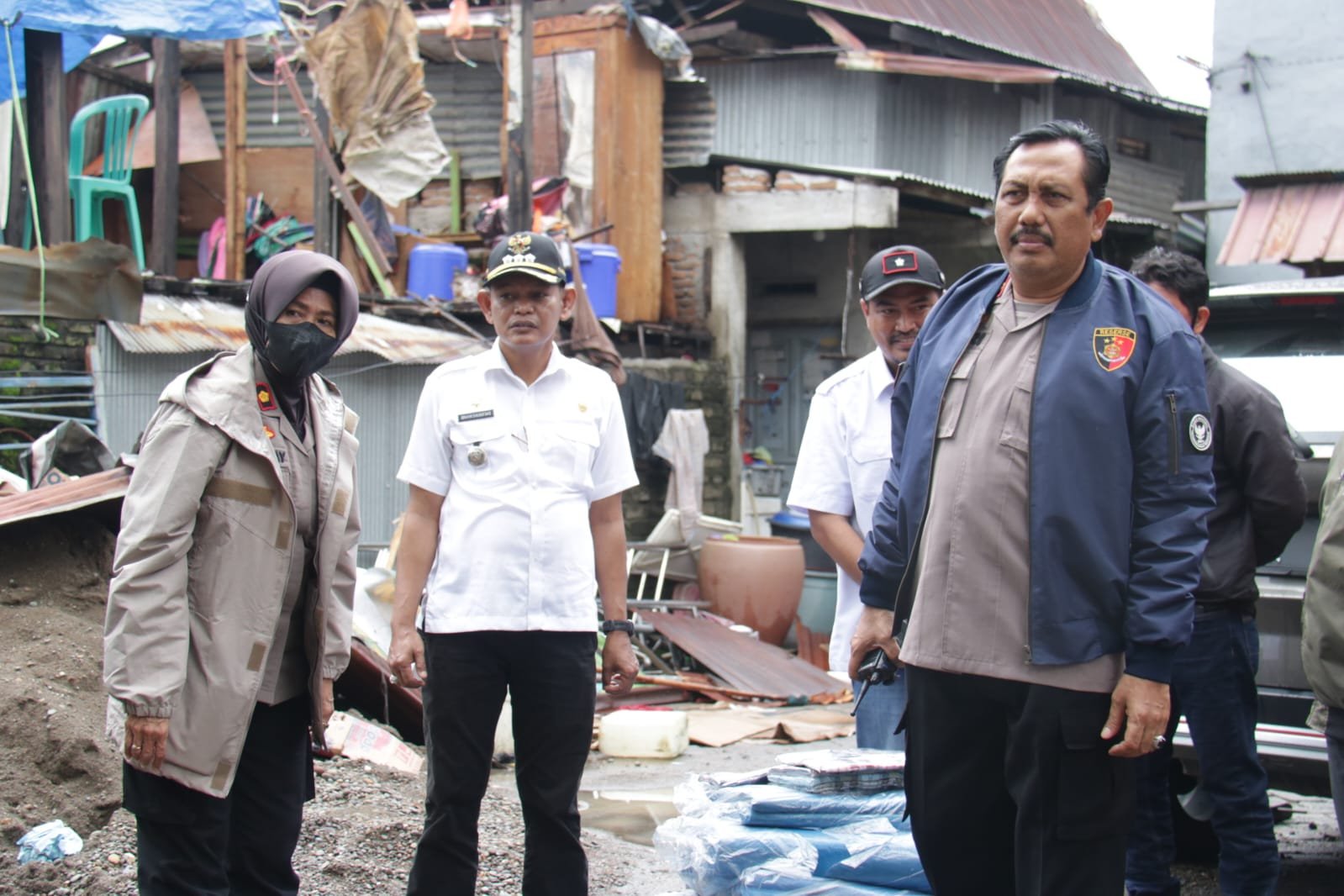 Wakapolres Pelabuhan Makassar Kompol Sugeng Suprijanto mengecek lokasi terdampak angin puting beliung, di Kelurahan Camba Berua dan Kelurahan Cambayya Dukuh, Kecamatan Ujung Tanah, Makassar, Rabu (04/01/2023).