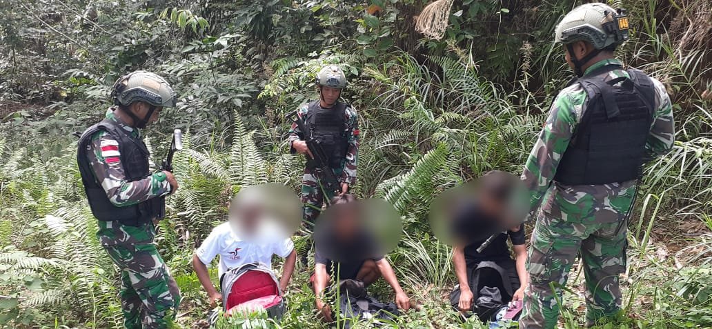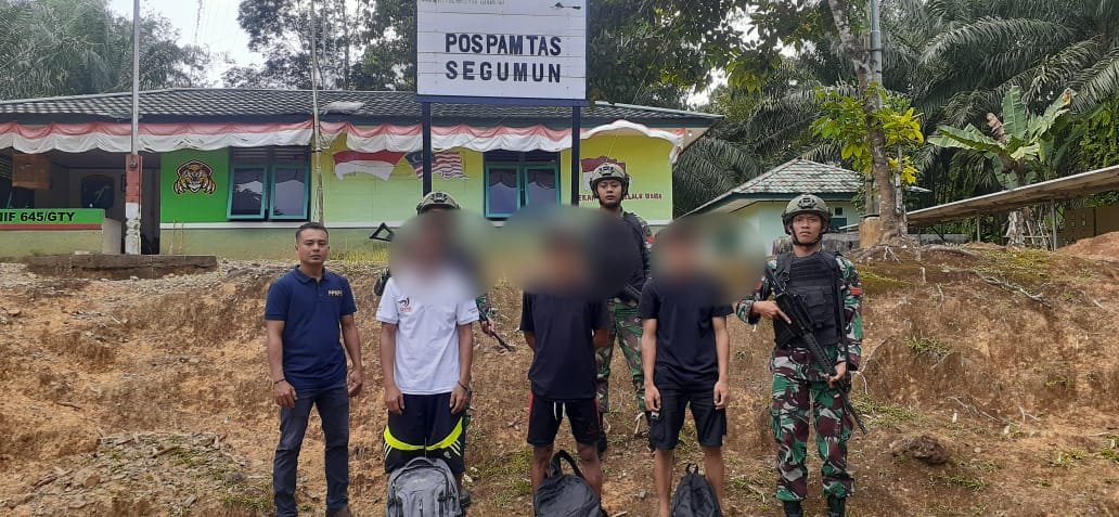 Tingkatkan patroli keamanan di jalur-jalur tikus atau jalur tidak resmi, Prajurit Pos Segumon Satuan Tugas Pengamanan Perbatasan (Satgas Pamtas) RI-Malaysia Yonif 645/Gardatama Yudha berhasil amankan 3 (tiga) orang Pekerja Migran Indonesia (PMI) non prosedural saat melewati di jalur tikus/jalur tidak resmi (JTR) sektor Segumon, Dusun Segumon, Desa Lubuk Sabuk, Kecamatan Sekayam, Kabupaten Sanggau.