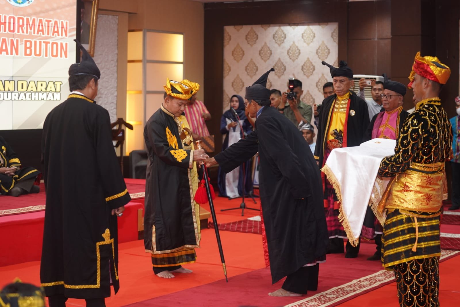 Prosesi penganugerahan gelar kehormatan adat ini, diawali dengan pemasangan baju dan pemberian tongkat adat Buton kepada Kasad oleh perangkat Kesultanan Buton.