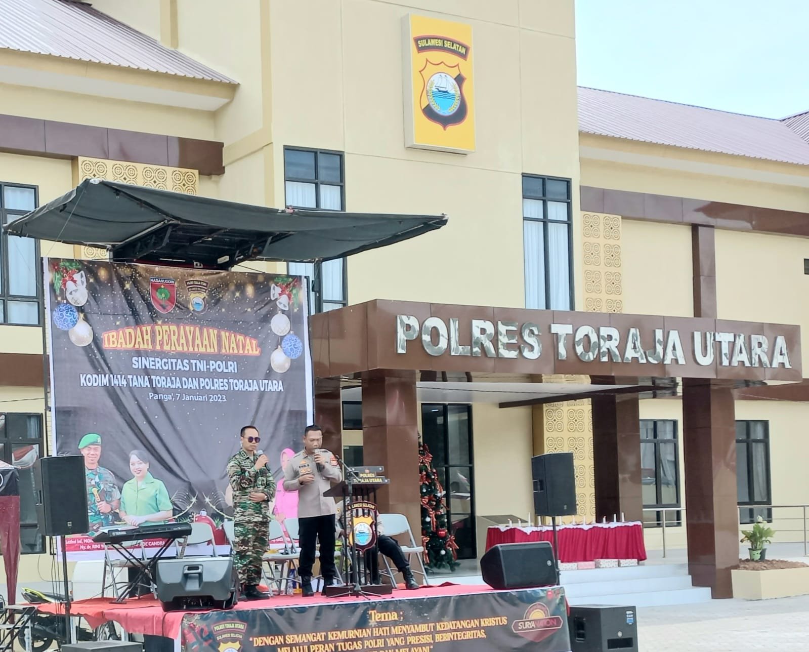 Natal bersama yang pertama kali diadakan oleh Kodim 1414 Tana Toraja bersama Polres Toraja Utara dalam memperkokoh sinergitas untuk membangun kerjasama dalam pelayanan kepada masyarakat. Selain itu juga, Keluarga TNI-Polri hadir bersilaturrahmi dengan terlihat akrab dan hikmat, baik yang beragama Nasrani maupun Muslim dan keduanya hadir dalam pelaksanaan Perayaan Natal, untuk memperkokoh sinergitas TNI-Polri.