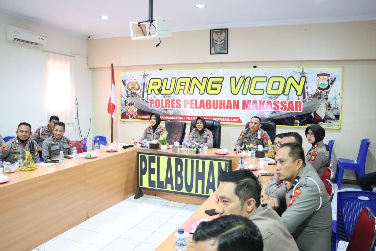 Polres Pelabuhan Makassar menerima Binlat seleksi Sekolah Inspektur Polisi (SIP) angkatan ke-52 TA 2023 dari Biro SDM Polda Sulsel melalui Zoom Meeting di Aula Vicon Mapolres tersebut, Rabu (11/01/2023).