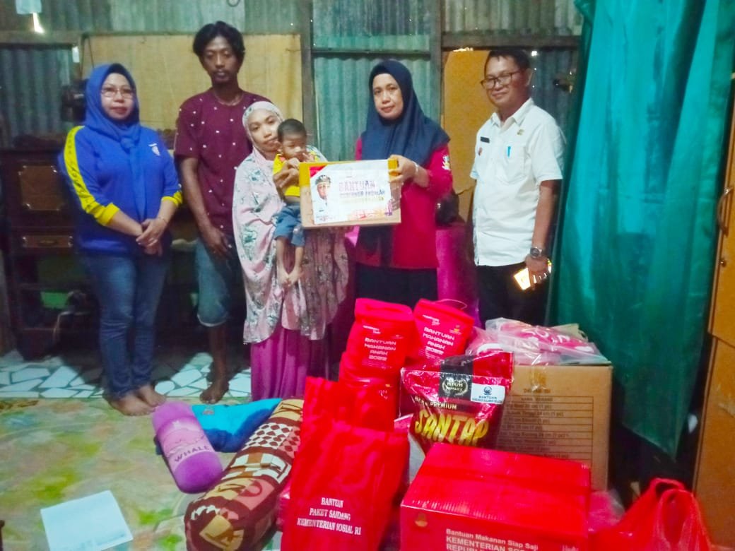 Kegiatan penyaluran bantuan dipimpin langsung Kepala Dinas Sosial, Hj. Satmawati, S.Sos, M.AP yang didampingi jajaran personel Tagana.