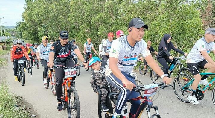 Dengan membonceng putra bungsunya, Bupati ASA bersama isteri tercinta Hj. Andi Nurhilda Daramata Seto yang juga Ketua Tim Penggerak PKK Sinjai, ikut mengayuh sepeda bersama ratusan peserta.