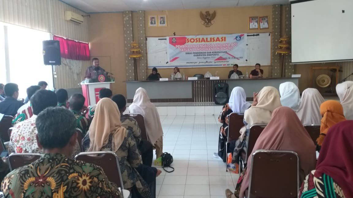 Kegiataan sosialisasi pengelolaan dana operasional sekolah ini untuk tahun anggaran 2023 direncanakan berlangsung tanggal 10-11 Maret 2023 dan persertanya dibagi dua golombang yakni hari pertama Kepala Sekolah dan Bendahara dari Kecamatan Bangkala Barat, Bangkala, Tamalatea, Bontoramba dan Binamu. Sedangkan gelombang kedua diikuti dari Kepala sekolah, Bendahara dari Kecamatan Batang, Tarowang, Arungkeke, Turatea, Kelara dan Kecamatan Rumbia.