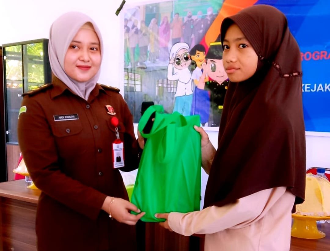 Di akhir sesi tanya jawab, tiga jaksa muda wanita telah menyerahkan paket bingkisan kepada para siswa dan siswi yang mempunyai keberanian dan nyali untuk mengajukan pertanyaan seputar materi yang dipaparkan oleh ketiga srikandi itu. (M. Daeng Siudjung Nyulle)