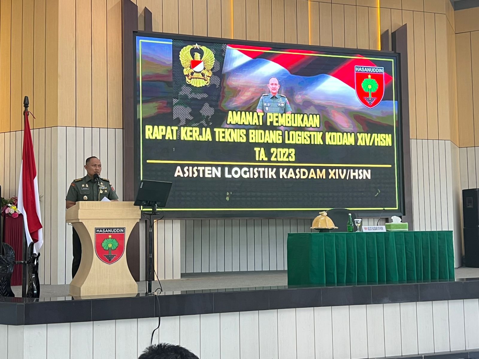 Dalam rangka meningkatkan kinerja personel logistik, Kodam XIV/Hasanuddin melakukan rapat kerja teknis (Rakernis) bidang Logistik, yang dipimpin oleh Asisten Logistik (Aslog) Kasdam XIV/Hasanuddin Kolonel Arm Gunawan, S.Sos, MT di Balai Pertemuan Hasanuddin Makodam, Kota Makassar, Kamis (16/03/2023).