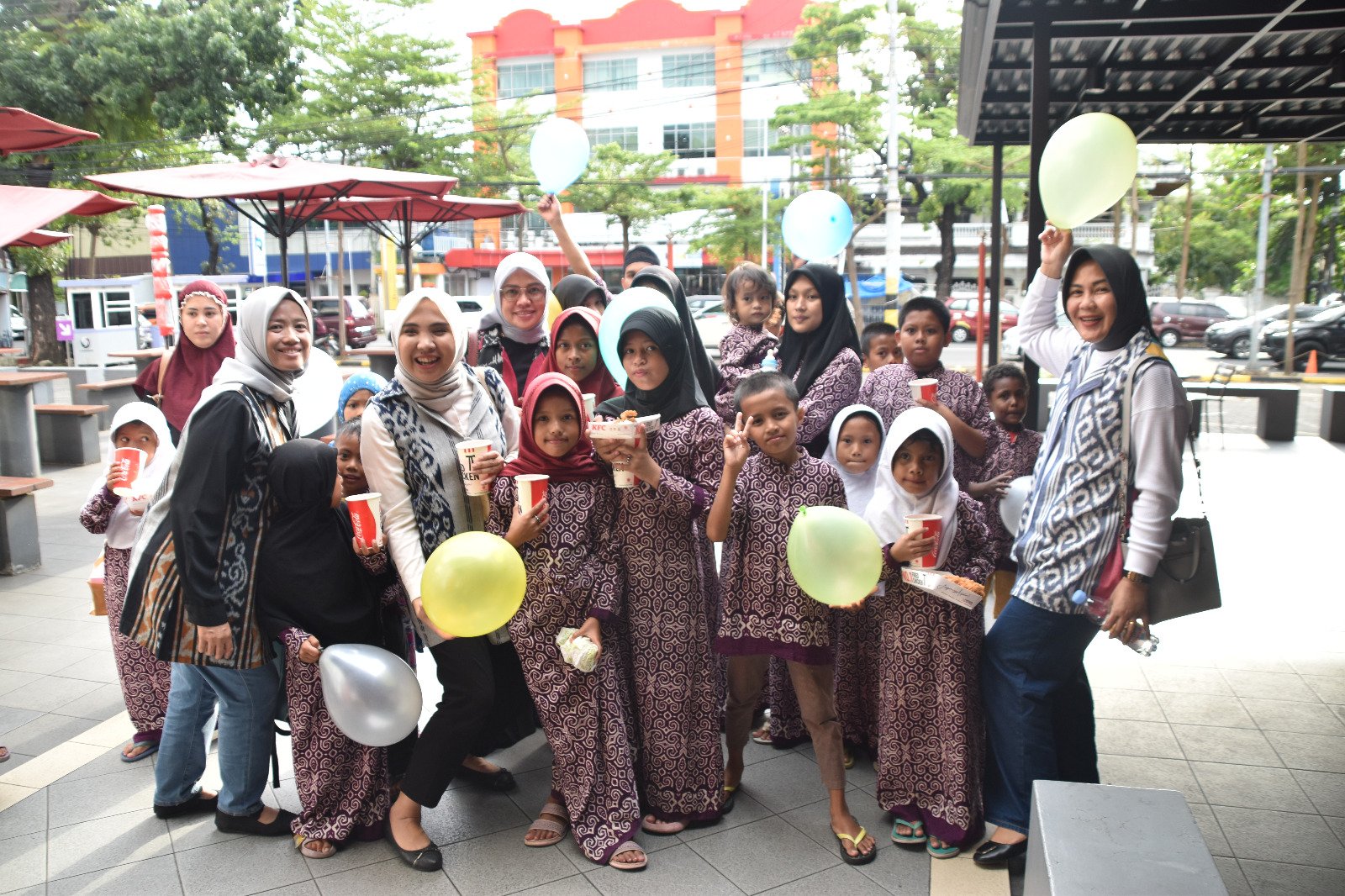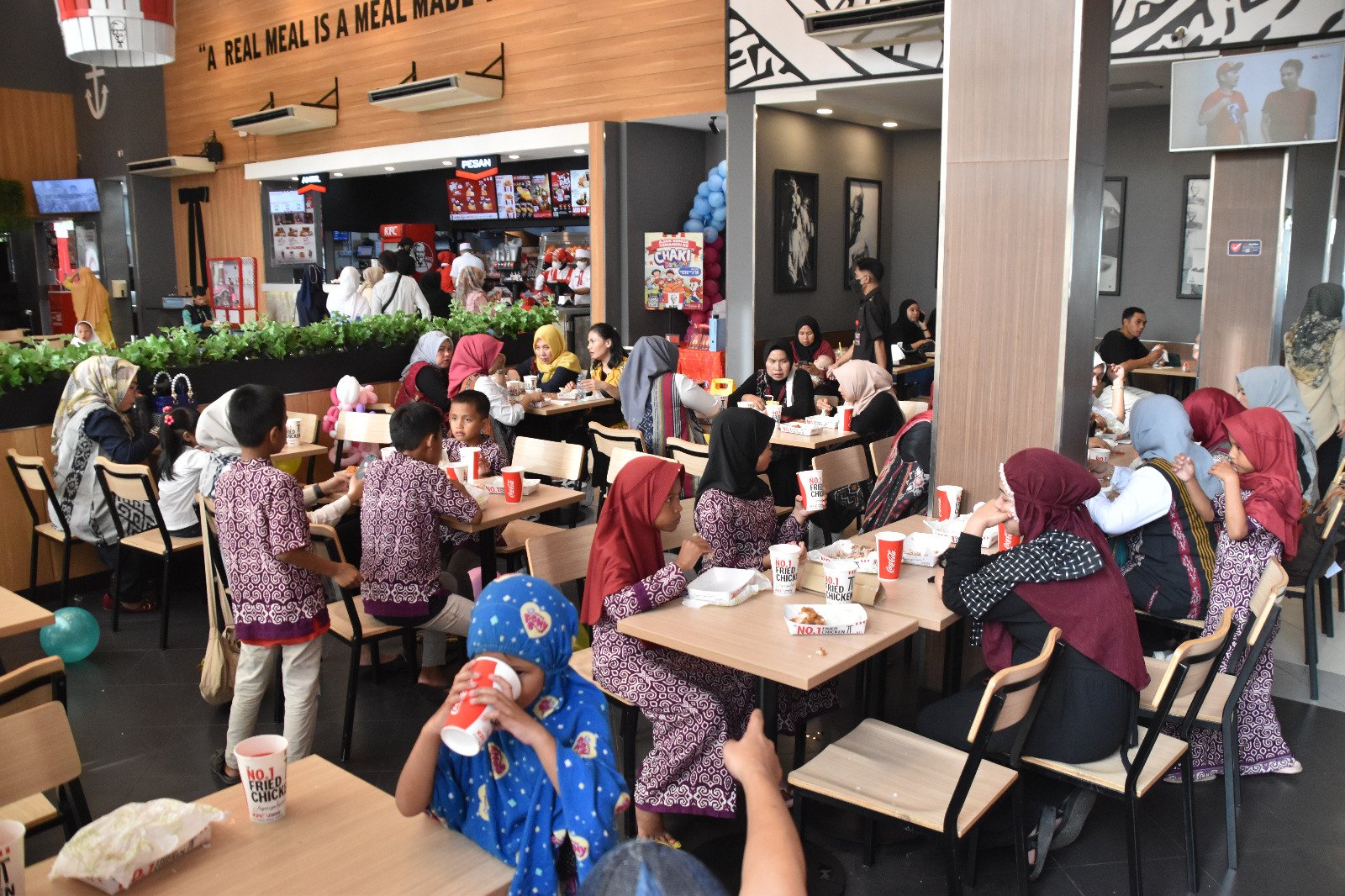 Ketua Persit Kartika Candra Kirana (KCK) Cabang XI Kodim 1408/Makassar Cut Mutia Syahreda bersama pengurus cabang berbagi kebahagiaan terhadap anak Panti Asuhan Cahaya Resky dengan mengajak makan makanan siap saji dan bermain bersama di Playground KFC, Jalan Dr. Ratulangi, Kota Makassar, Jumat (17/03/2023).