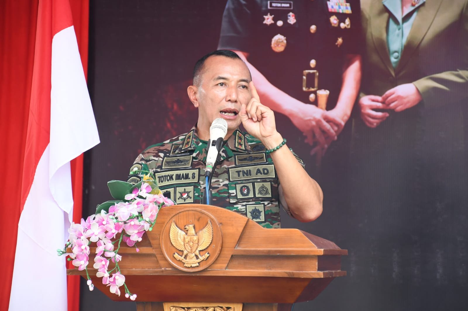 Di akhir pengarahannya Mayjen Totok menekankan agar senantiasa melaksanakan tugas dengan mengimplementasikan slogan 6K di hati kita (Karakter, Kapabel, Kontemporer, Kompak, Kesemestaan dan Kerakyatan).