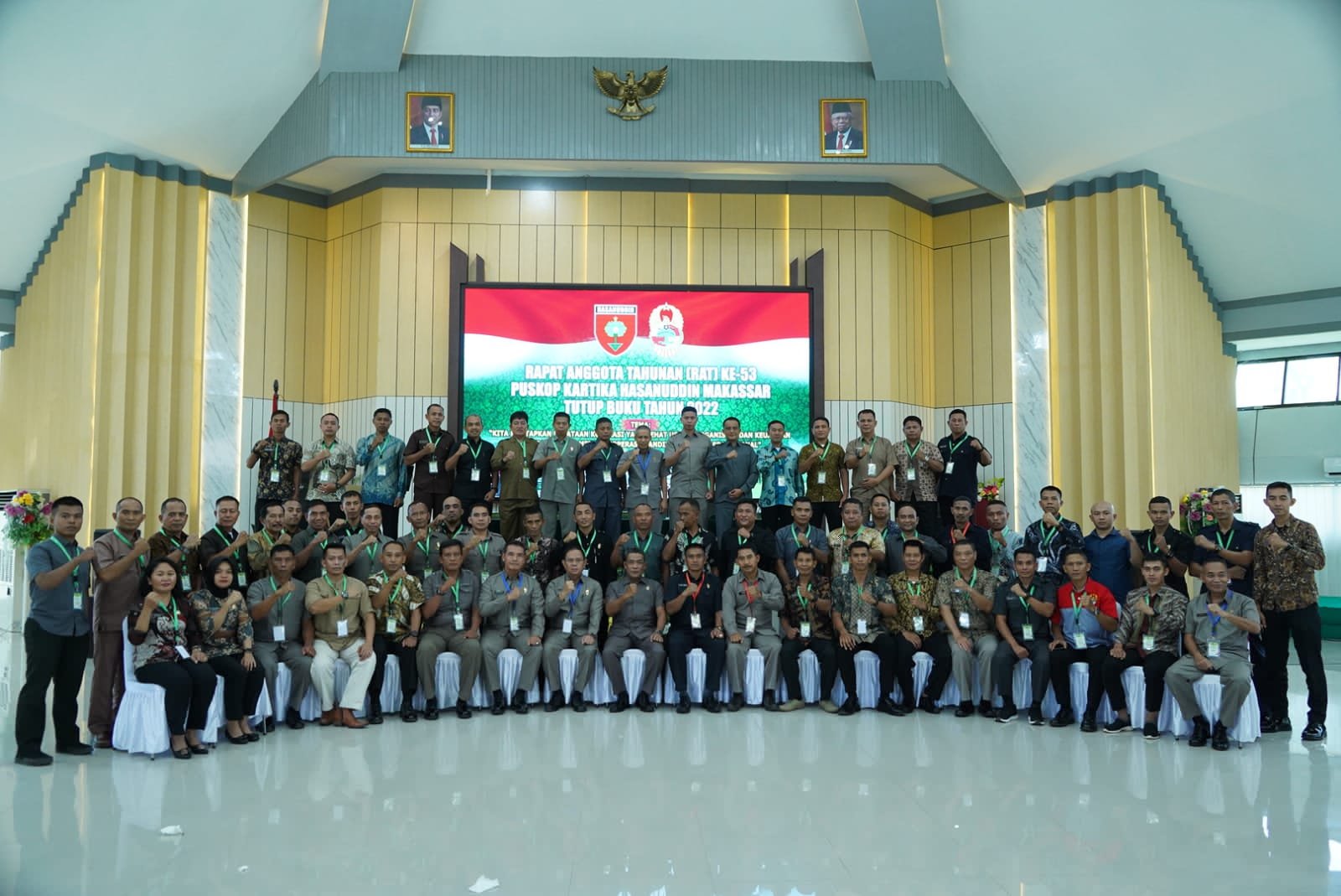 Kepala Staf Kodam (Kasdam) XIV/Hasanuddin Brigjen TNI Dany Budiyanto mewakili Pangdam XIV/Hasanuddin, membuka Rapat Anggota Tahunan ke-53 Puskop Kartika Hasanuddin Makassar Tutup Buku Tahun 2022, bertempat di Balai Pertemuan Hasanuddin Makodam, Jumat (17/03/2023).