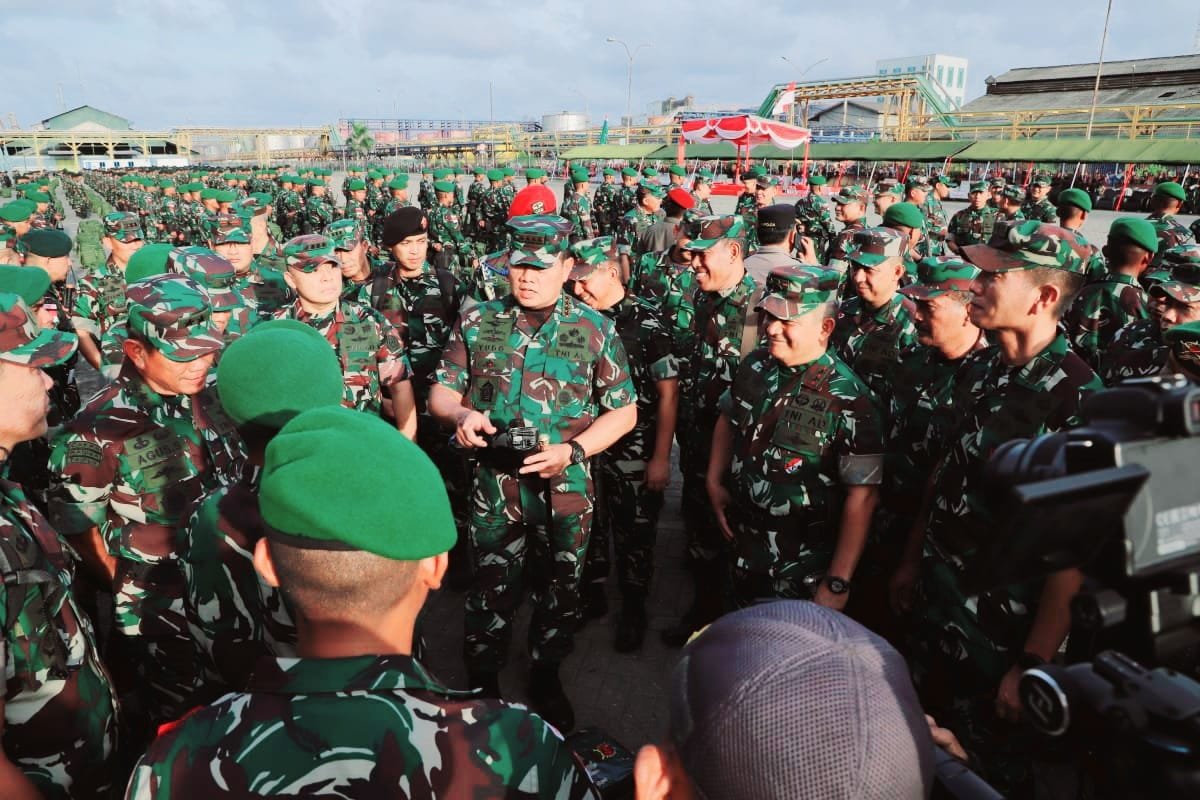 Panglima TNI Laksamana TNI Yudo Margono didampingi Pangdam I/BB Mayjen TNI A. Daniel Chardin, SE, M.Si memimpin upacara pemberangkatan 900 prajurit Batalyon Infanteri RK 115/ML dan Yonif 125/SMB. Pasukan tersebut akan melaksanakan Satgas dalam rangka operasi Pengamanan Perbatasan (Pamtas) RI-PNG Kewilayahan Papua selama 12 bulan.