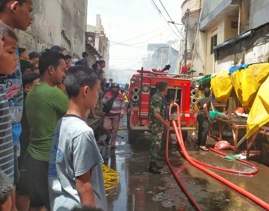 Babinsa Koramil 1408-04/Bontoala Serda Akbar bersama Dinas Pemadam Kebakaran dan dibantu warga setempat berjibaku mengevakuasi korban dan barang-barang yang bisa diselamatkan.