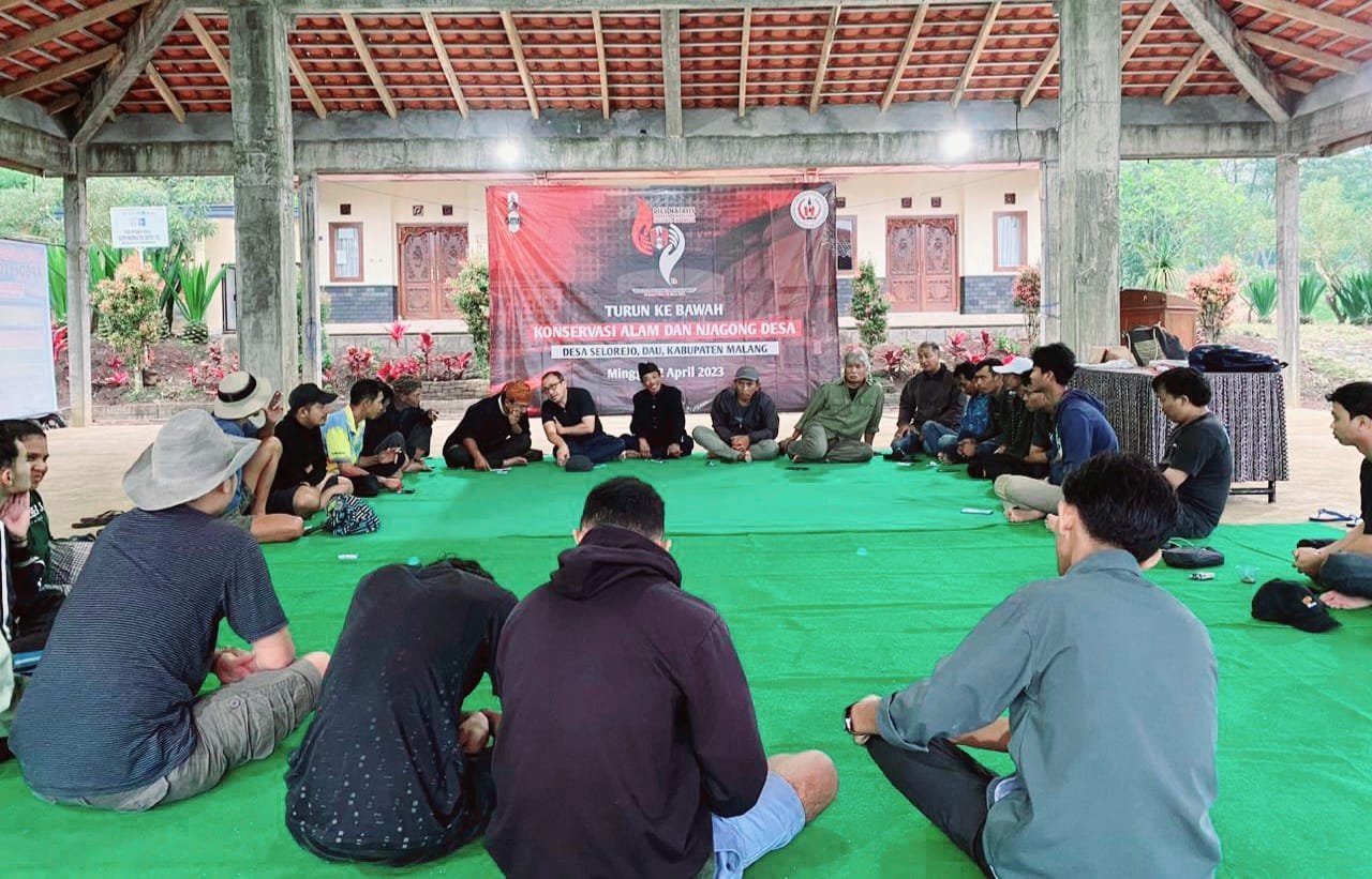Kali ini, GMNI Malang memfokuskan agenda pada pembahasan perihal konservasi dan penguatan lembaga lokal yang diangkat dalam forum "njagong" atau duduk bersama dengan berbagai stakeholder Desa Selorejo.