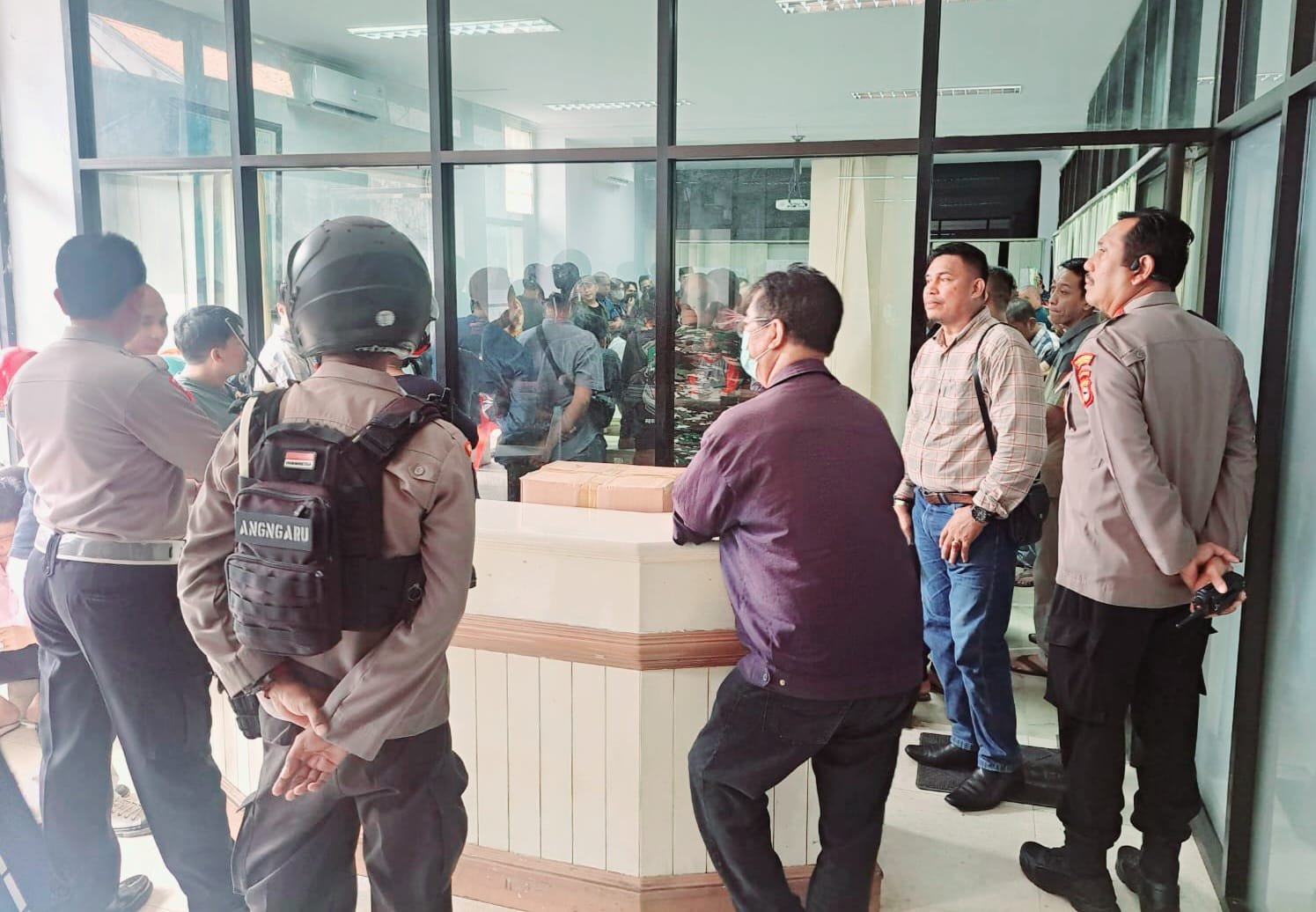 Agar berjalan aman, Polres Pelabuhan Makassar melakukan mediasi kepada massa pendemo yang menggelar aksi unjuk rasa dengan pihak perusahaan pengelola New Makassar Mall atau Pasar Sentral, Senin (03/04/2023).