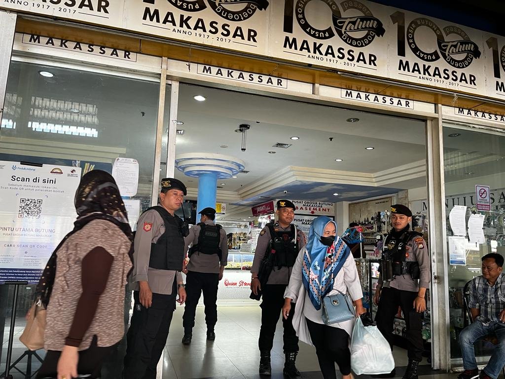Sebagai upaya memelihara keamanan dan ketertiban masyarakat yang aman dan kondusif, personel Satuan Samapta Polres Pelabuhan Makassar melaksanakan patroli dialogis, dengan sasaran pusat perbelanjaan.