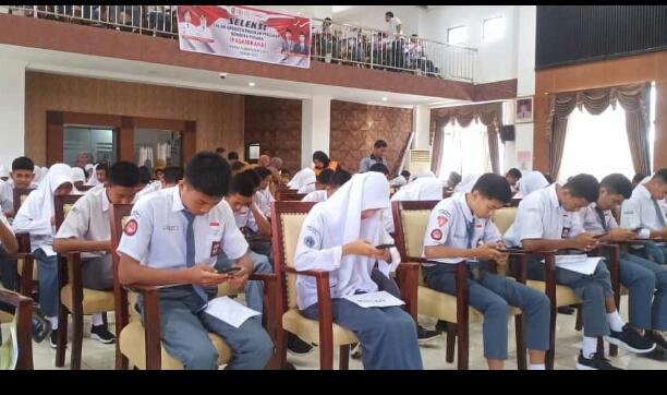 Ratusan calon anggota Pasukan Pengibar Bendera Pusaka (Paskibraka) Tahun 2023 di Kabupaten Sinjai mengikuti tes Pembinaan Ideologi Pancasila (PIP) secara daring atau online, di Ruang Pola kantor Bupati Sinjai, Selasa (4/4/2023) pagi.