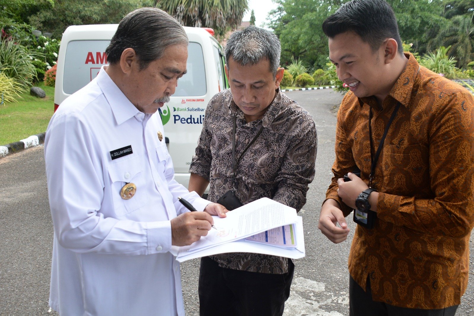 Penyerahan berlangsung di halaman Kantor Bupati Sidrap, Kelurahan Batu Lappa, Kecamatan Watang Pulu. Bupati Sidrap, H. Dollah Mando menerima langsung mobil dari Pimpinan Cabang Bank Sulselbar Sidrap, Dhin Nuwara.