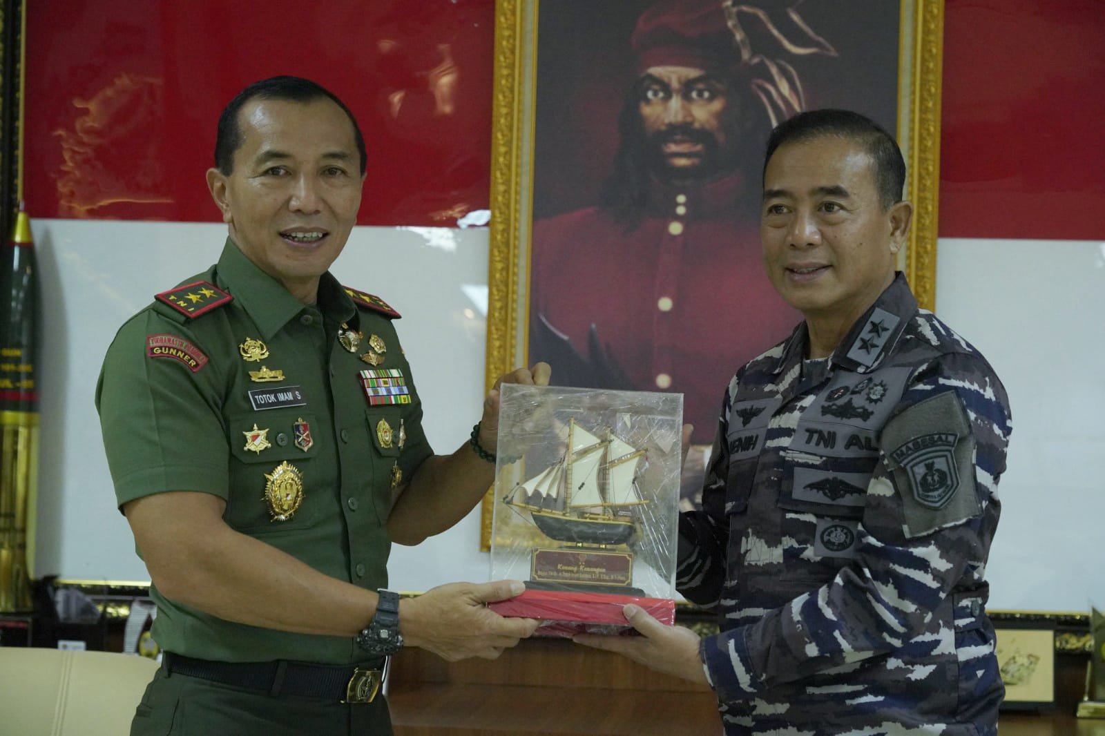 Pangdam XIV/Hasanuddin Mayjen TNI Dr. Totok Imam Santoso, SIP, S.Sos, M.Tr(Han), didampingi sejumlah Pejabat Utama (PJU) Kodam XIV/Hasanuddin, menerima Audiensi Asisten Operasi Kepala Staf Angkatan Laut (Asops Kasal) Laksda TNI Denih Hendrata, SE, MM, CHRMP beserta rombongan, bertempat di ruang kerja Pangdam, Kota Makassar, Rabu (05/04/2023).