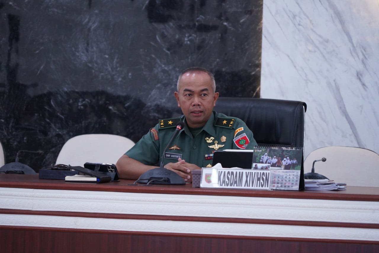 Sebagai upaya dalam membangun kesamaan visi, persepsi dan interpretasi, Kasdam XIV/Hasanuddin Brigjen TNI Dany Budiyanto mewakili Pangdam XIV/Hasanuddin, membuka rapat Panitia Program Kerja dan Anggaran (Panproggar) Triwulan I TA 2023 jajaran Kodam XIV/Hasanuddin, bertempat di Ruang Bina Yudha (RBY) Makodam, Kota Makassar, Kamis (06/04/2023).