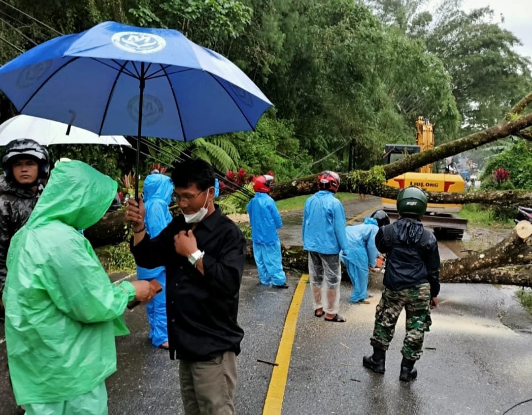 Dengan kesigapan anggota tim BPBD setelah menerima informasi langsung bergerak mendatangi lokasi dan langsung bekerja dan memotong-motong batang pohon tersebut.