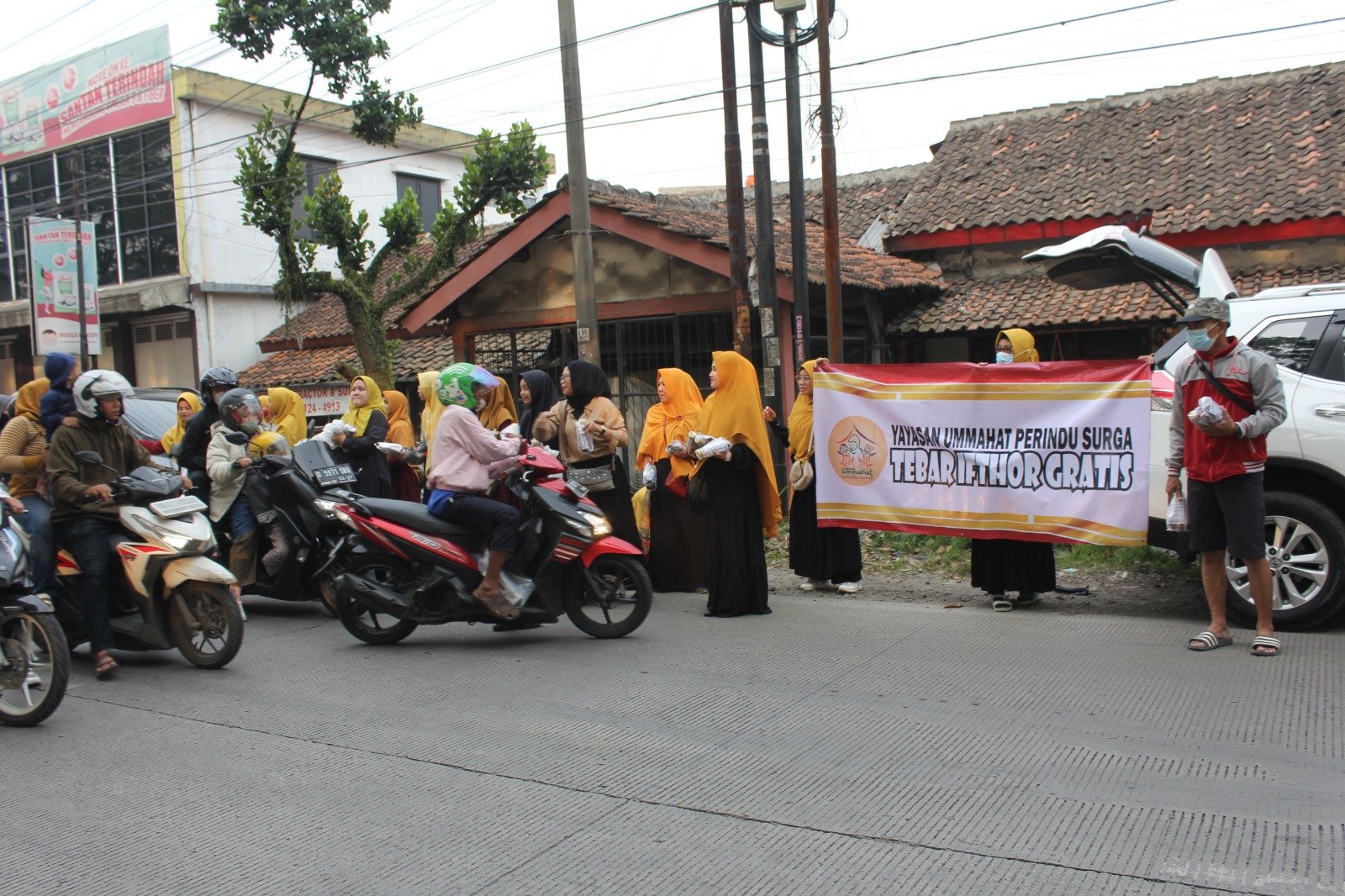 Selain bingkisan bagi guru mengaji, Ummahat juga membagikan 2.000 paket takjil buat masyarakat pengguna jalan. (Yusrianti Ponto)