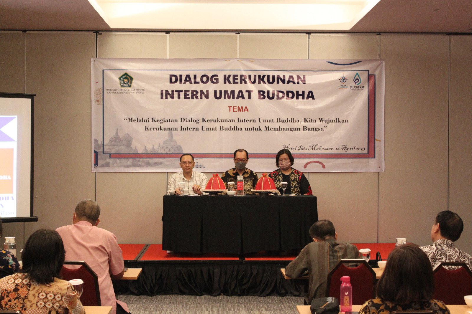 Empat puluh lima orang perwakilan berbagai Rumah Ibadah Agama Buddha mengikuti "Dialog Kerukunan Intern Umat Buddha" di Ibis Makassar City Center, Makassar pada Minggu (16/04/2023), dengan mengangkat tema "Melalui Kegiatan Dialog Kerukunan Intern Umat Buddha, Kita Wujudkan Kerukunan Intern Umat Buddha untuk Membangun Bangsa".