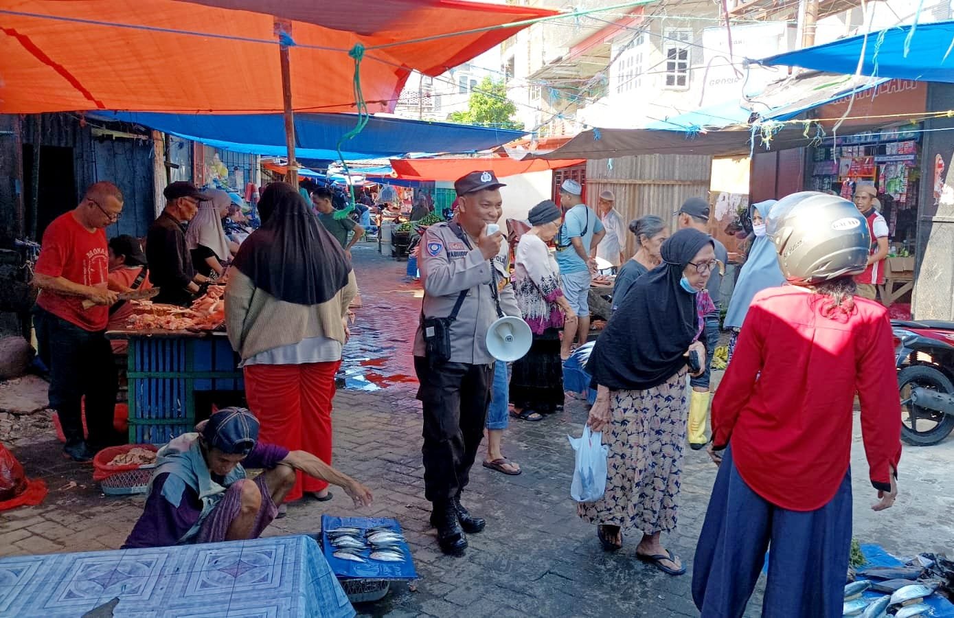 Untuk menciptakan situasi yang aman dan kondusif menjelang hari raya Idul Fitri 1444 H, Babinkamtibmas Tabaringan Aiptu Syamsuddin melaksanakan sambang di pasar tradisional, guna memberikan pesan–pesan kamtibmas kepada warga masyarakat, Rabu (19/04/2023).