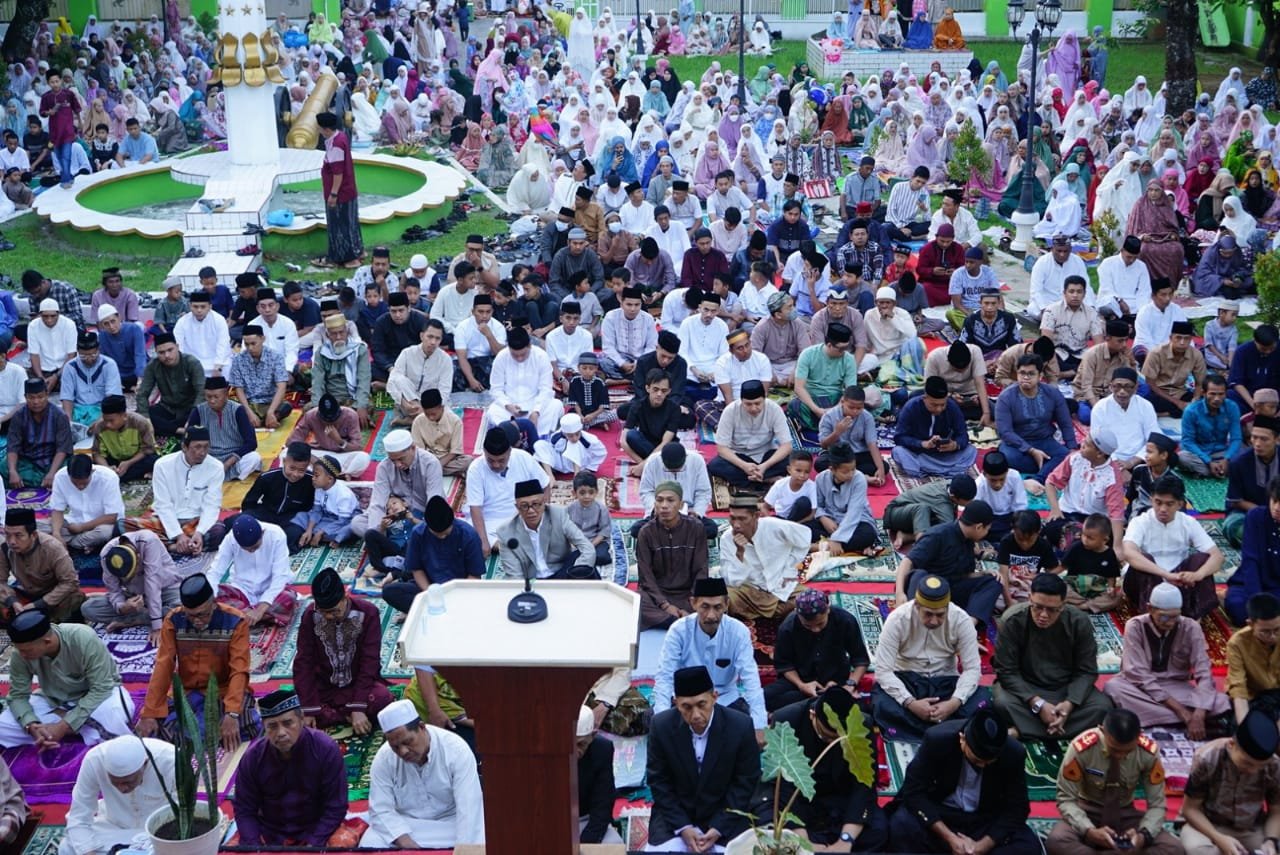 Adapun pelaksanaan shalat Ied dipimpin oleh Imam Muhammad Risal Abdullah dan yang bertindak sebagai Khotib yakni DR. DRS. H. Muh. Nurdin Nani, M.Pd. (*Rz)