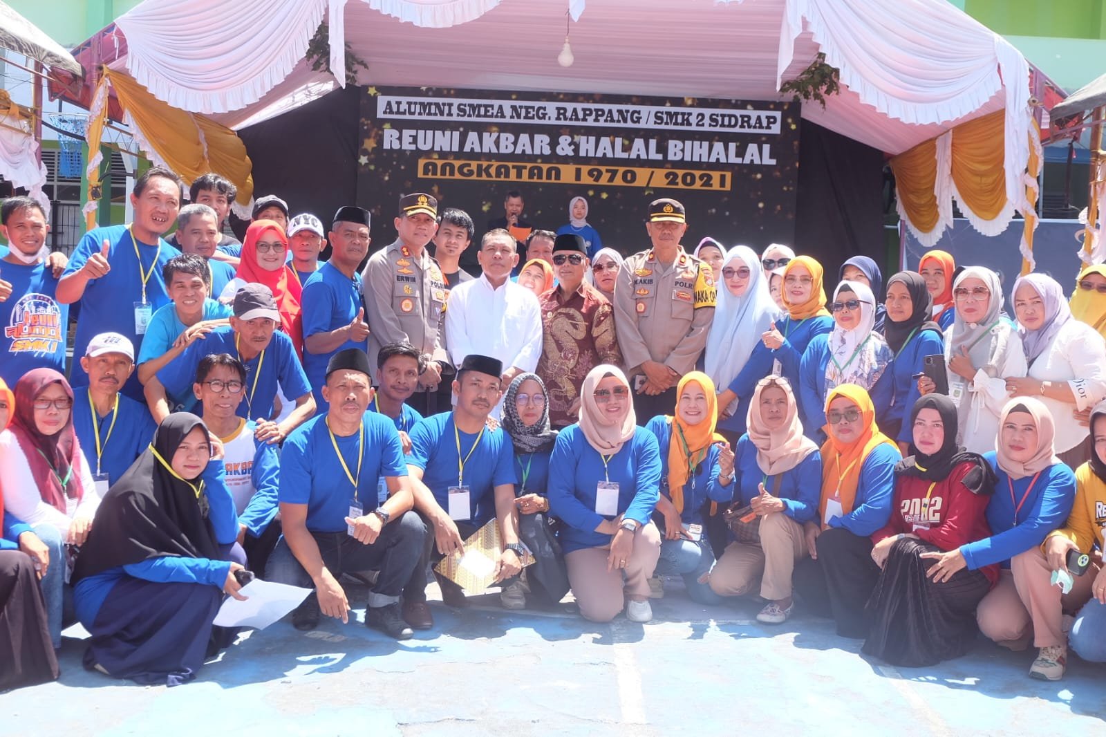 Acara ini dihadiri Wakil Bupati Sidrap Mahmud Yusuf, Kapolres Sidrap AKBP Erwin Syah, Kepala SMKN 2 Sidrap M. Syukur, dewan guru, tokoh masyarakat, serta para alumni angkatan 1970 sampai angkatan 2021.