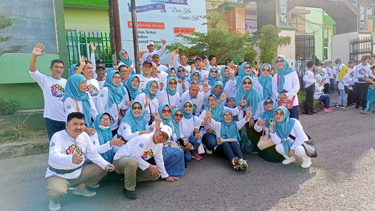 Hajatan Reuni Akbar 2023 bertema "Dari Kita, Untuk Kita" yang dihadiri ratusan alumni lintas angkatan (1957-2022) SMANSA Parepare, berlangsung meriah di Lapangan Andi Makkasau yang diwarnai dengan kegiatan jalan sehat sebagai salah satu agenda acara.