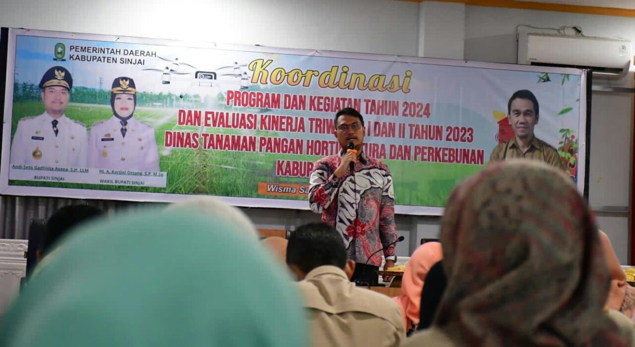 Bupati Sinjai Andi Seto Asapa (ASA) menghadiri rapat koordinasi (Rakor) Program Tanaman Pangan, Hortikultura dan Perkebunan (TPHP) tahun 2024 yang dirangkaikan dengan evaluasi kinerja triwulan I dan II Tahun 2023 di Aula Wisma Sanjaya, Kamis (11/5/2023).
