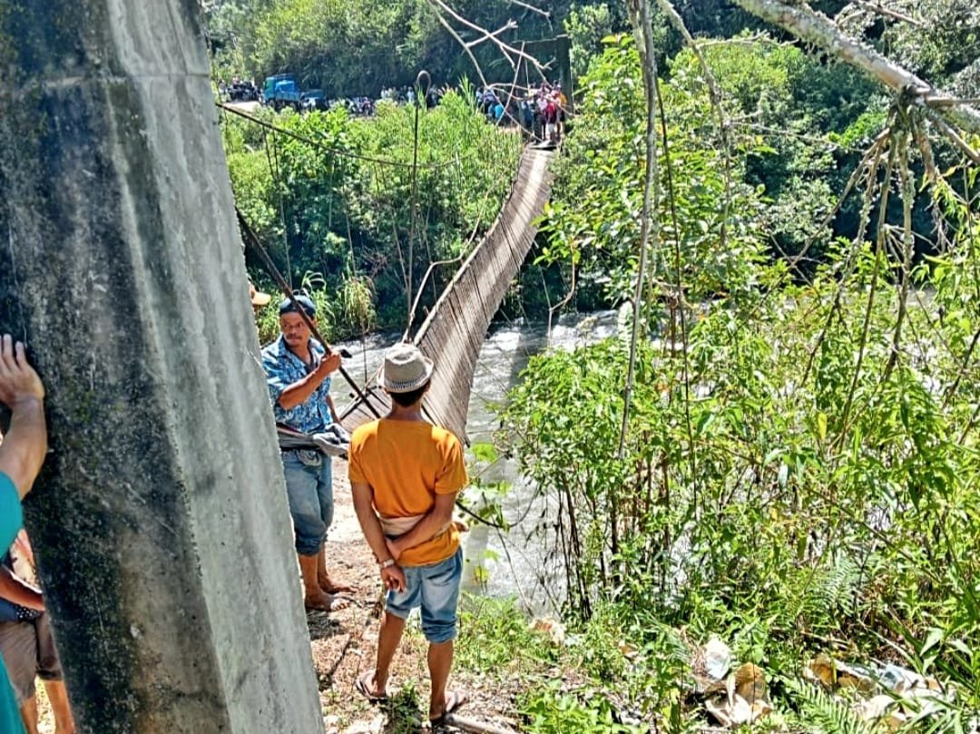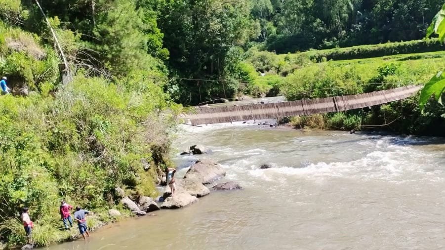 Rombongan keluarga Buntu lobo sebanyak 18 orang yang hendak menghadiri pesta perkawinan di salah satu kampung di Buntu Lepong, Lembang Lempo Po'ton, Kecamatan Rinding Allo, Sabtu (20/5/2023) pagi mengalami kecelakaan saat melintasi jembatan gantung yang dianggap sebagai jalan alternatif paling dekat menuju lokasi pesta.